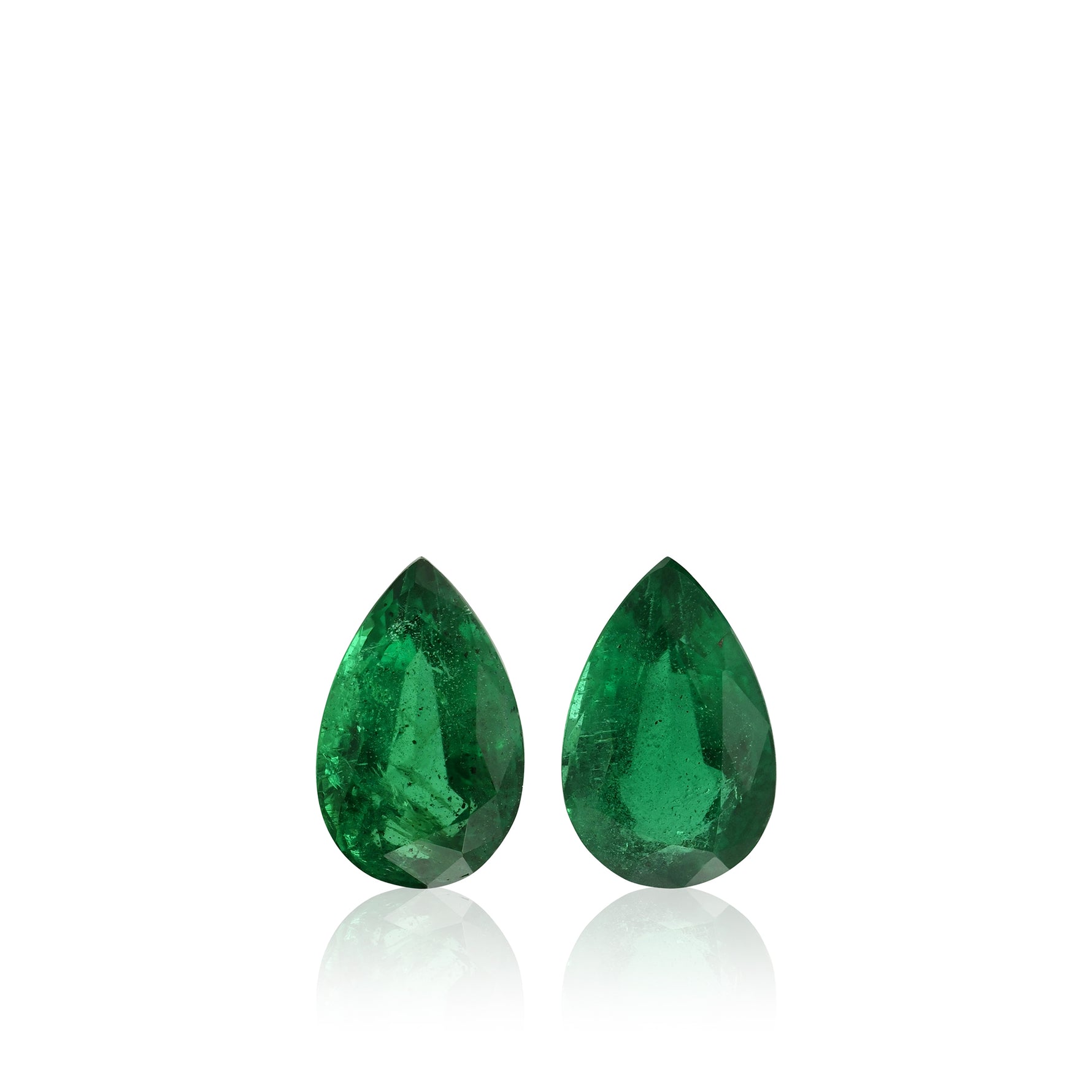 This exquisite pair of 4.90-carat green pear-shaped emeralds offers brilliant color and elegance, perfect for crafting standout jewelry that exudes timeless beauty.