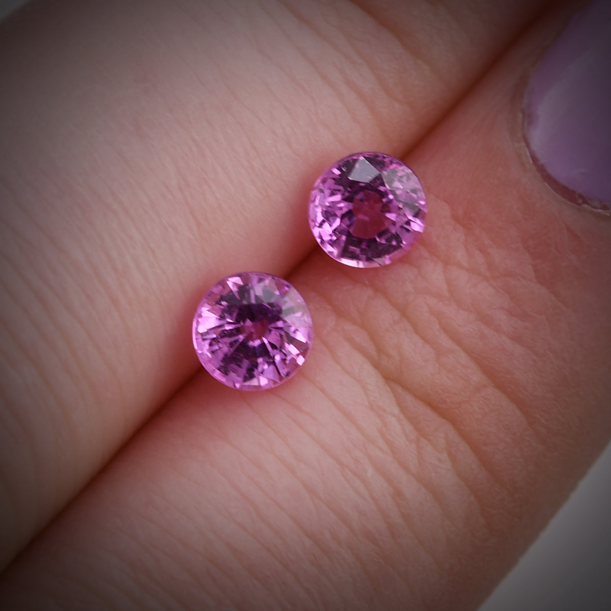 A striking pair of , round shape Sapphire gemstones, total weight 1.29cts. The stones have a scintillating fire and can be purchased as a loose pair or set as a pair of earrings in a Leibish setting style or custom design.