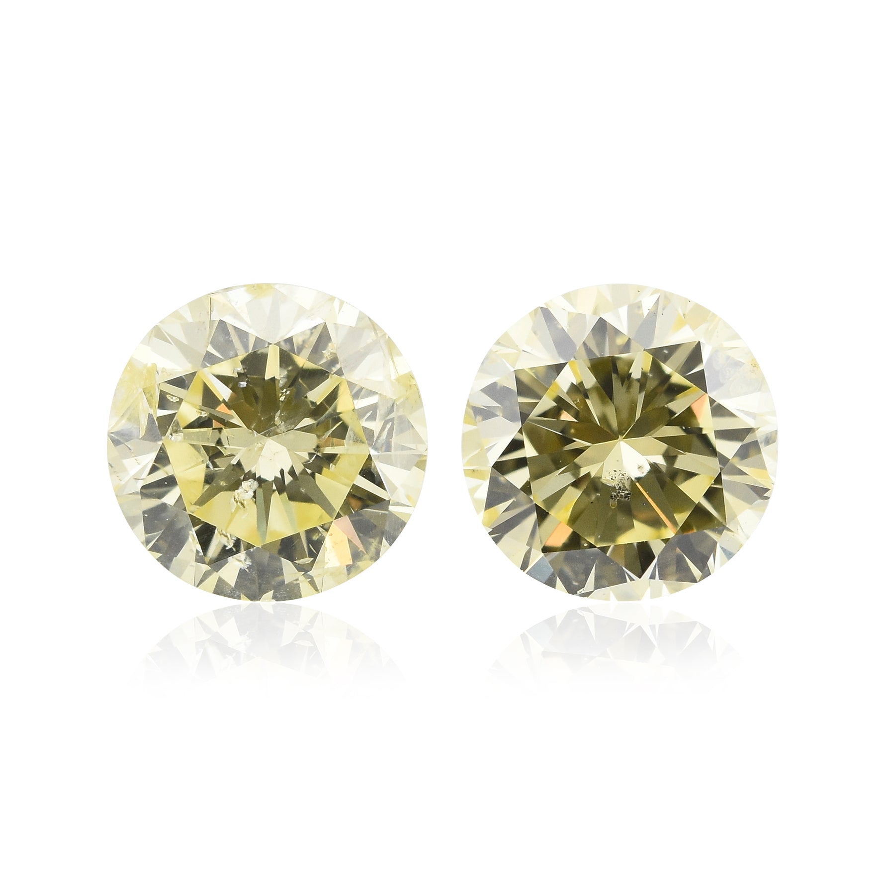 An exquisite pair of Light Yellow, Round shape Diamonds, total weight 2.28cts, with SI2 clarity, certified by GIA. The stones have amazing sparkle and can be purchased as a loose pair or set as a pair of earrings in a Leibish setting style or custom design.