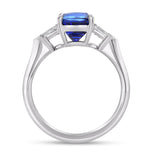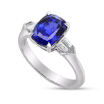 Royal Blue Sapphire Cushion & Diamond Engagement Ring