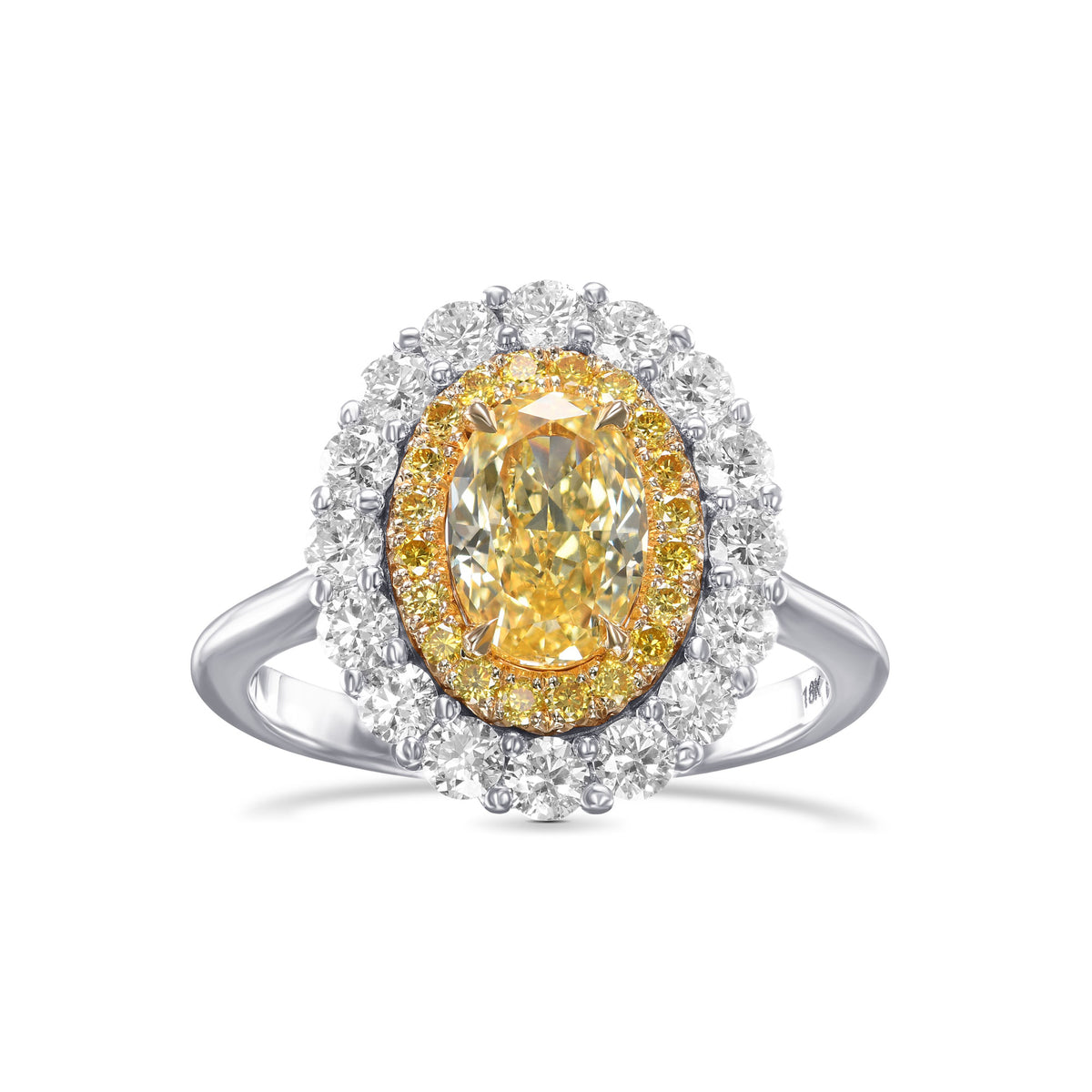 Fancy Intense Yellow Oval Double Halo Diamond Ring