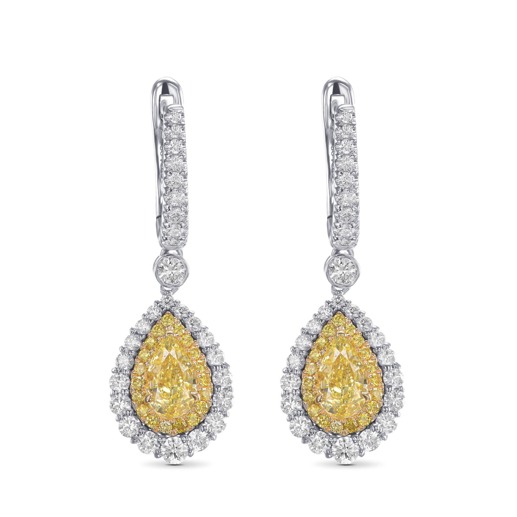 LEIBISH.Fancy Intense Yellow Pear Diamond Halo Drop Earrings