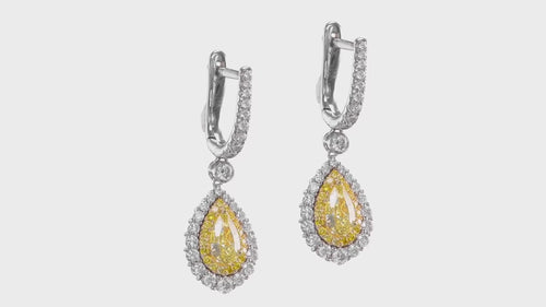 Fancy Intense Yellow Pear Diamond Halo Drop Earrings