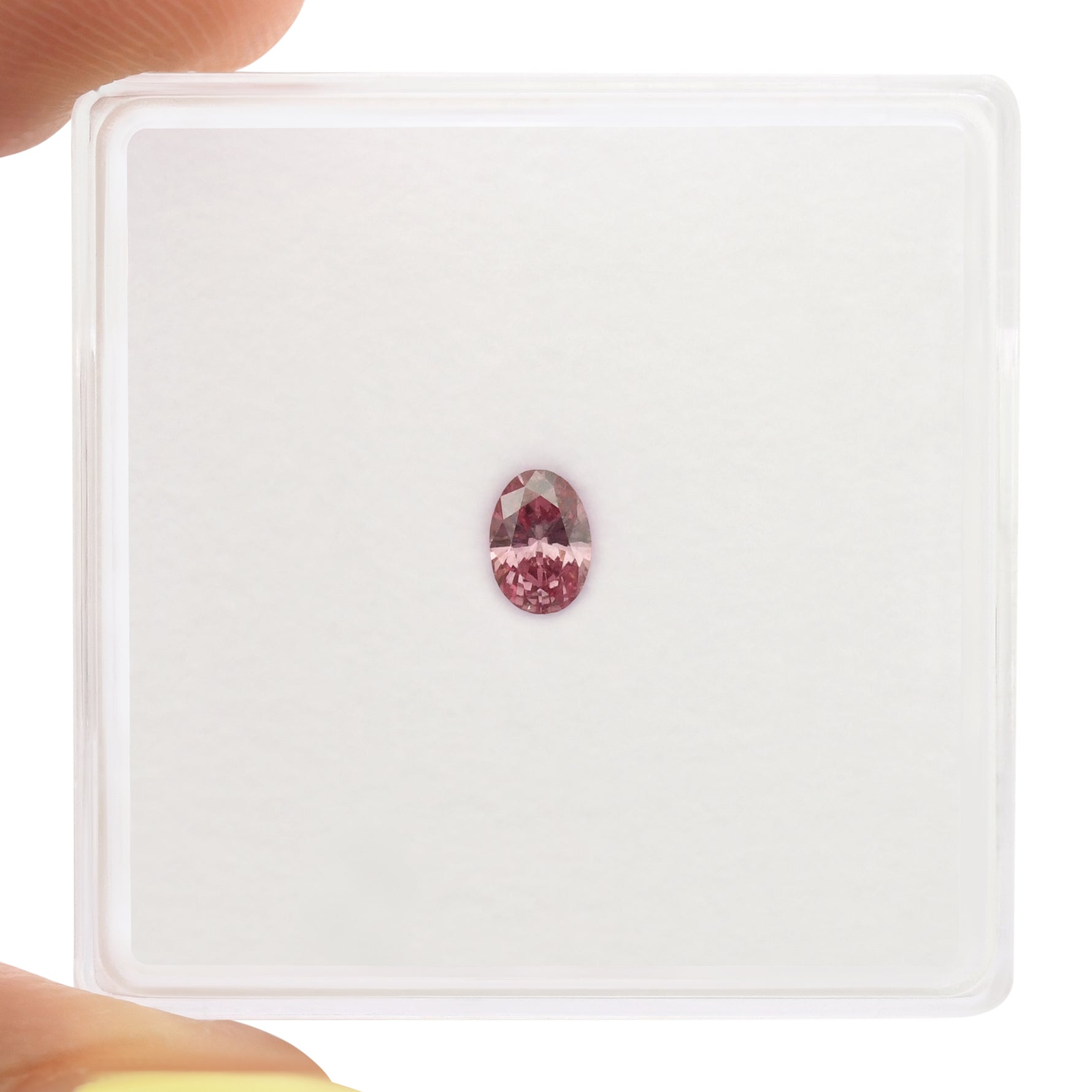 Prezzo unitario / perThis 0.16 carat Fancy Vivid Purplish Pink Oval Diamond, certified by GIA with an I2 clarity grade, offers a striking and rare splash of color.
