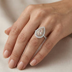 Light Pinkish Brown Pear Diamond Double Halo Ring