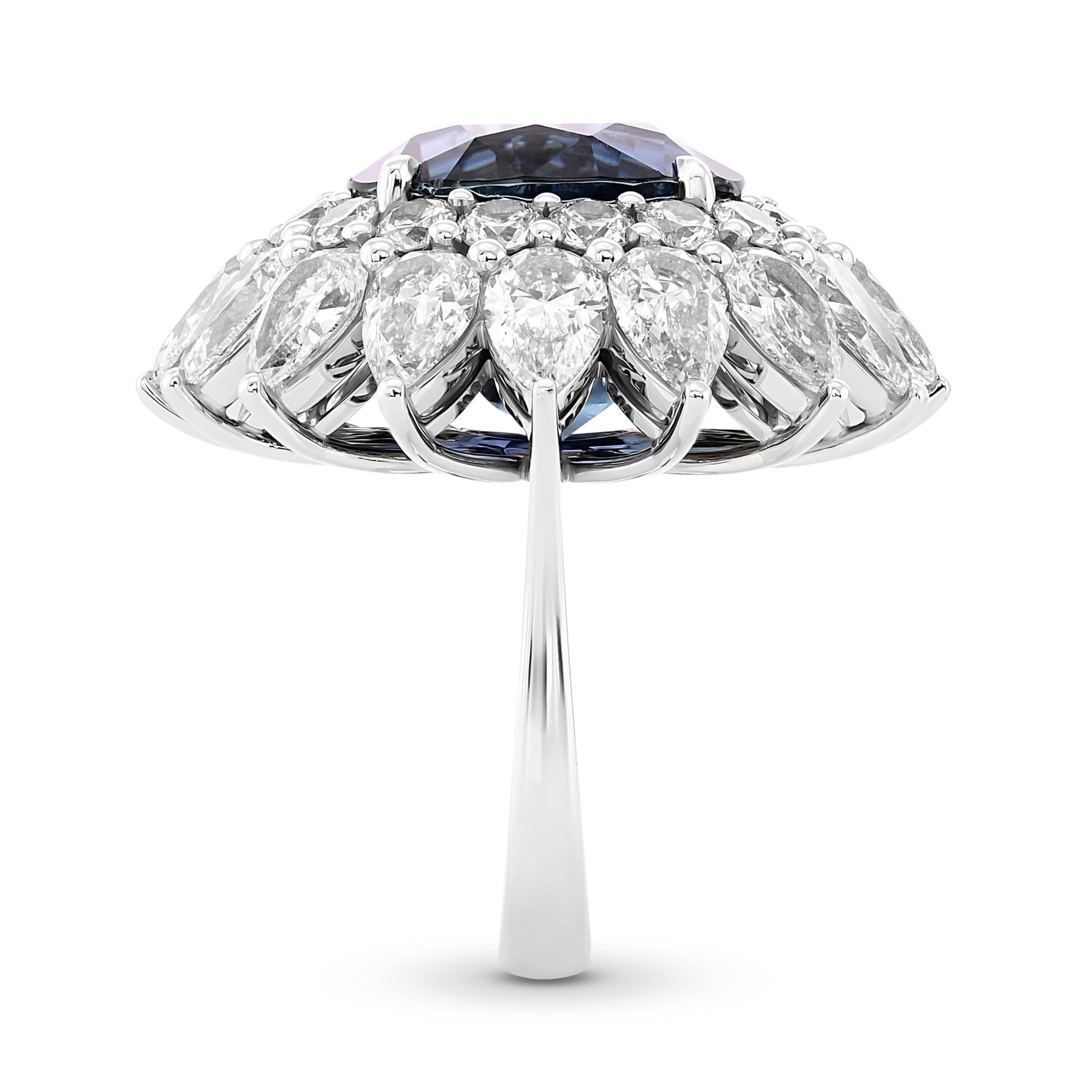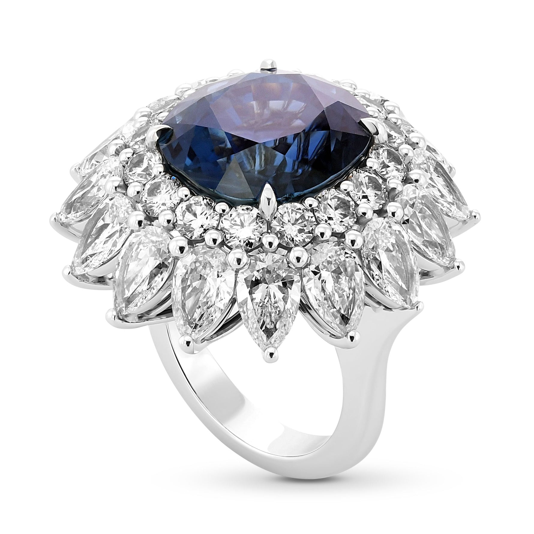 No Heat Burma Sapphire & Diamond Double Halo Ring GRS SSEF