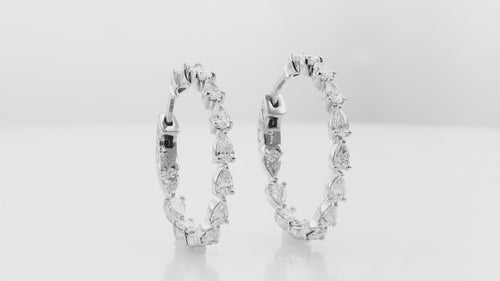 A beautiful pair of G-H color pear diamond hoop earrings, featuring 7.28cts diamonds with 0.81inch /20mm size hoops set in prongs and mounted in 18K white gold.
