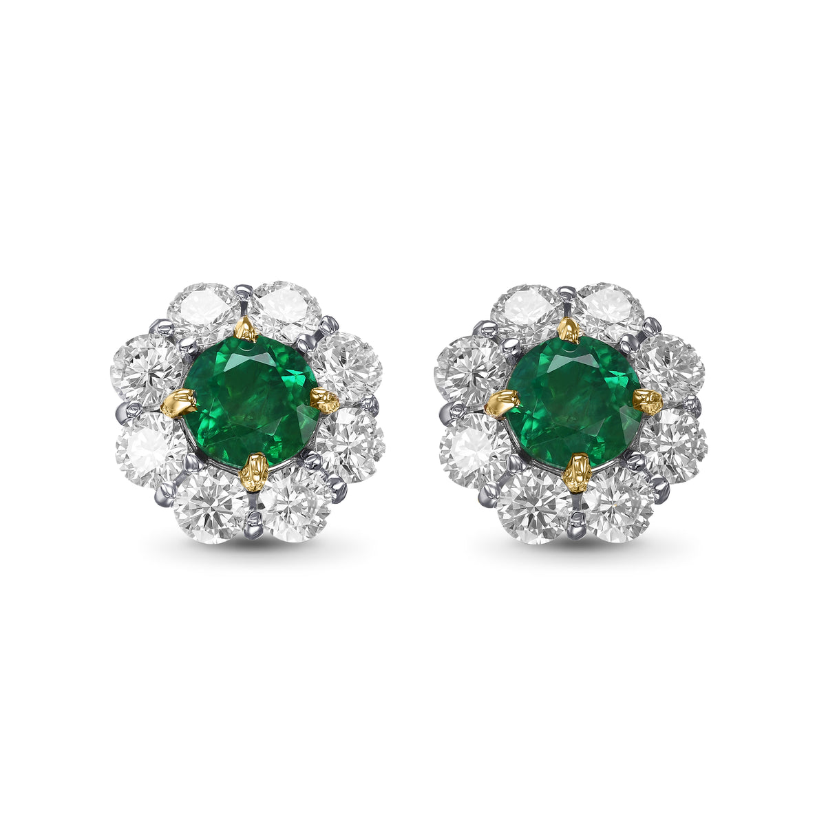 Round Emerald and Diamond Halo Earrings