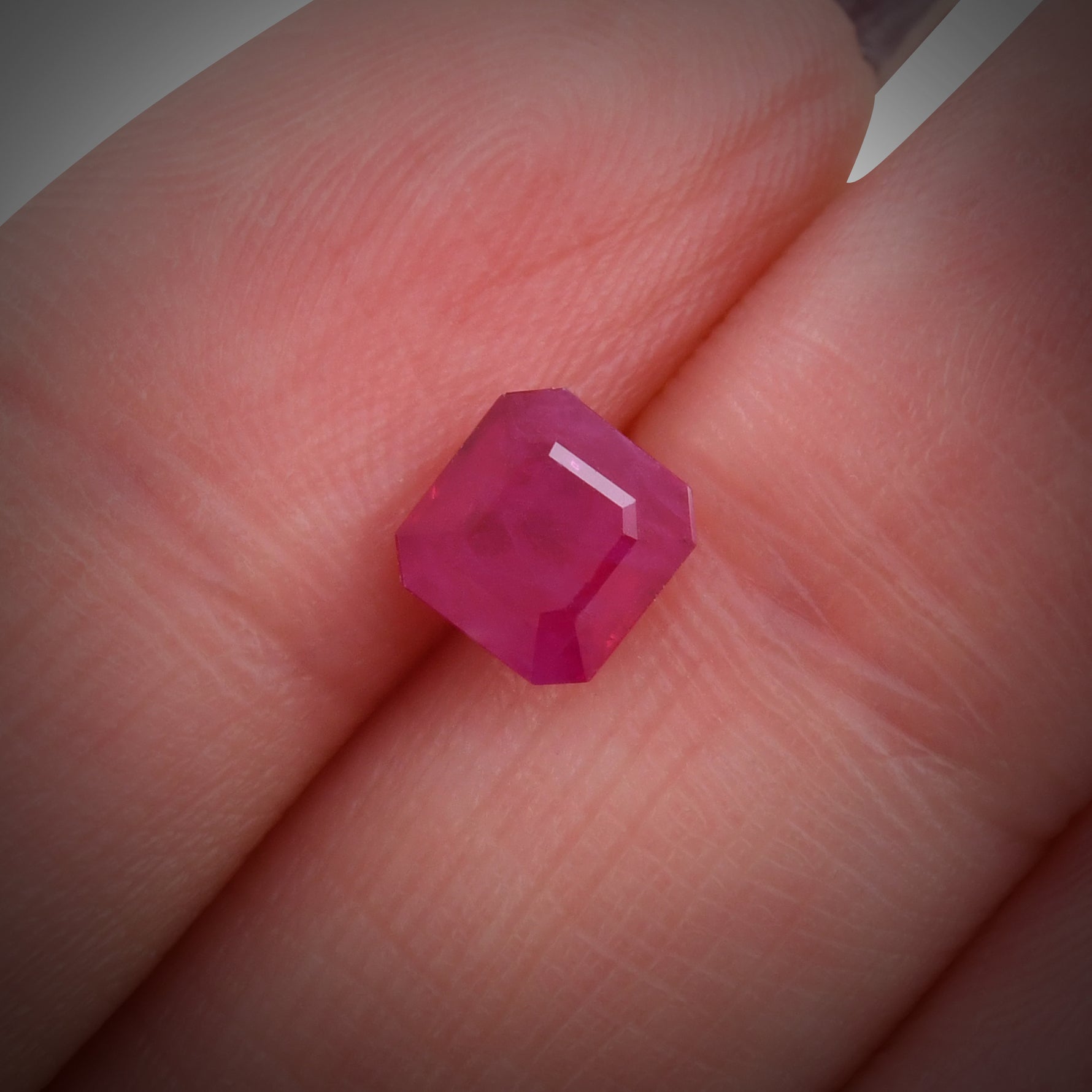 Questo sorprendente rubino da 1,20 carati sfoggia una tonalità cremisi intensa con una brillantezza eccezionale. Tagliata a forma di smeraldo classico, questa pietra del Mozambico mostra una notevole vivacità e vita, rendendola un fulcro ideale per gioielli raffinati. La ricca saturazione e lo scintillio vivace caratteristici dei rubini di alta qualità rendono questa gemma una scelta distintiva per collezionisti e intenditori.