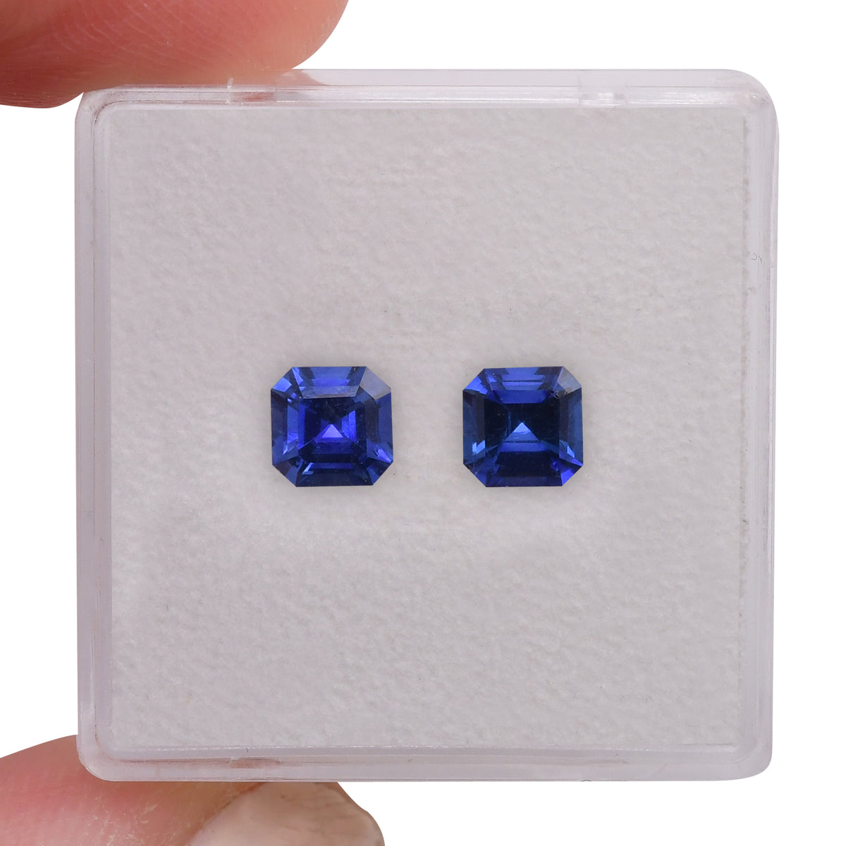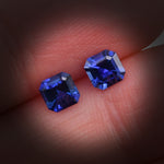 A fine pair of blue, emerald shape Sapphire gemstones, total weight 1.23cts. The stones have a lovely shape and can be purchased as a loose pair or set as a pair of earrings in a Leibish setting style or custom design.