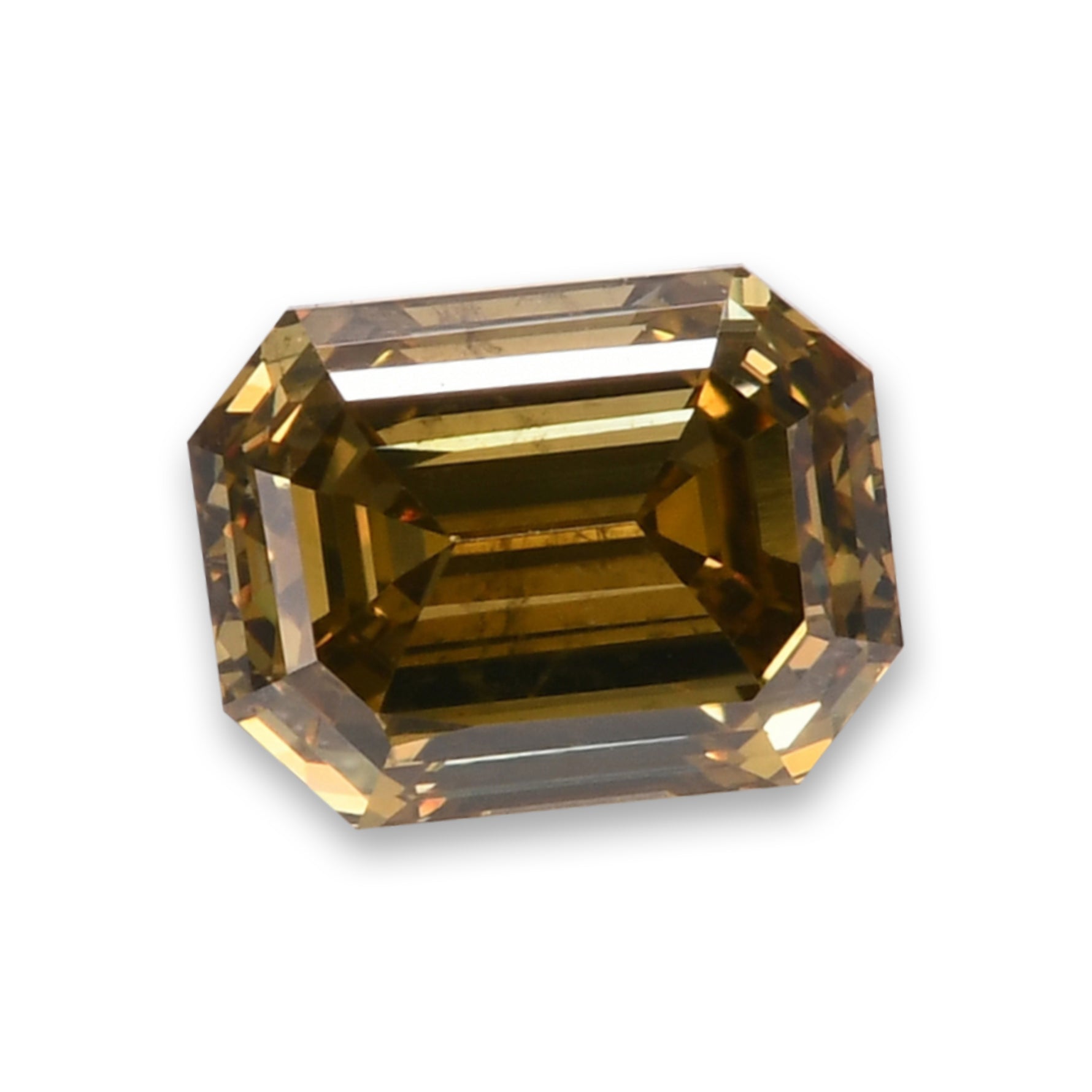 0.48 carat, Fancy Dark Brown Greenish Yellow, emerald shape diamond with SI1 clarity, graded by GIA. A lovely yellow diamond with an olive color face up. Clarity graded by our in house GIA GG Graduate Gemologist.