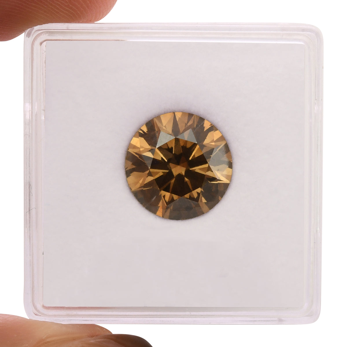 A striking 3.61-carat round diamond with a rare Fancy Dark orangy brown coloration, certified SI1 by GIA. This distinctive stone delivers substantial presence with warm, sophisticated tones ideal for the discerning collector seeking certified rarity and character. This is a Hearts and Arrows Diamond, a meticulously cut round brilliant diamond, known for its "super-ideal" precision, where perfect optical symmetry reveals eight distinct hearts when viewed from the bottom (pavilion) and eight symmetrical arrows when seen from the top (crown).