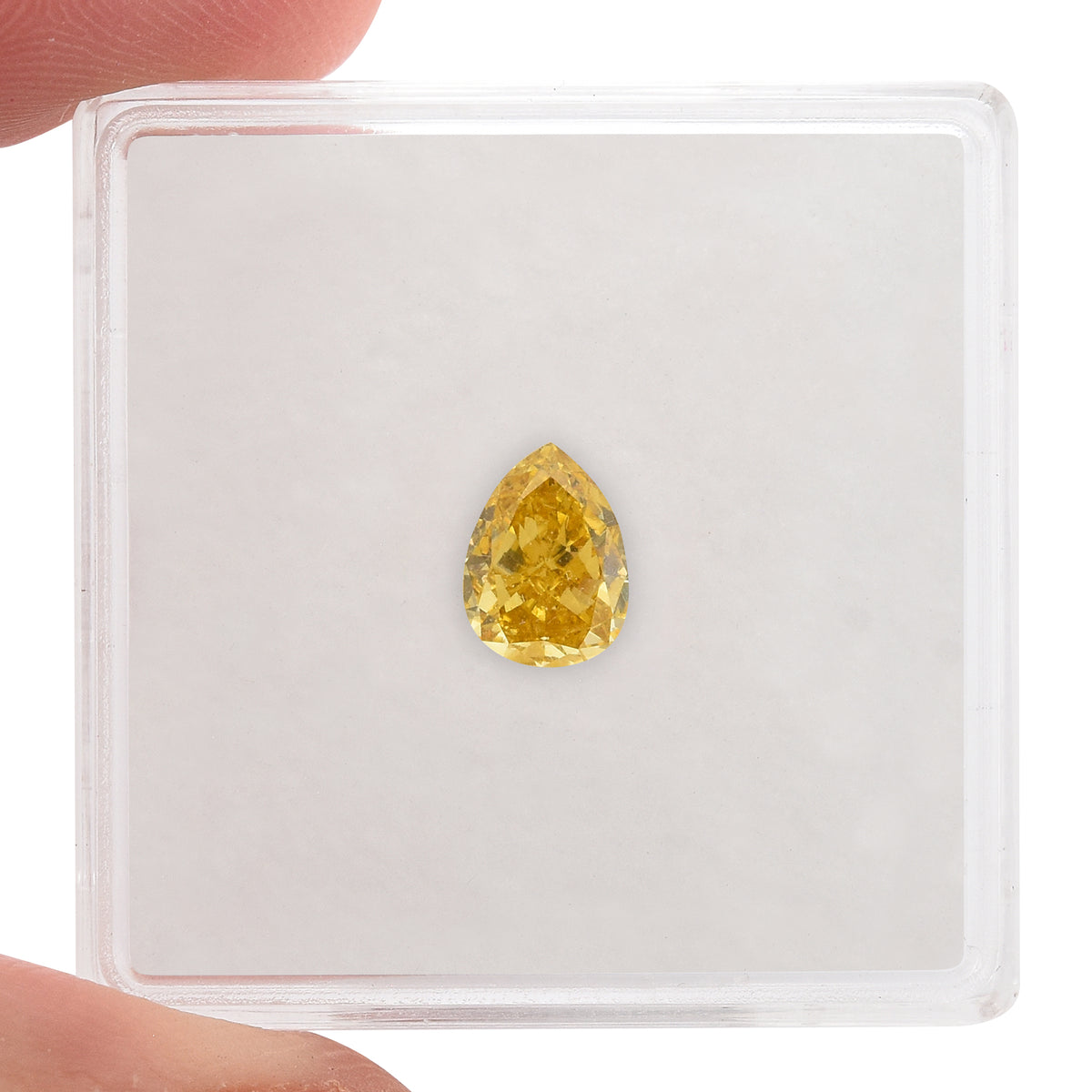 0.72 Carat Fancy Intense Orangy Yellow Pear Diamond VS1 GIA