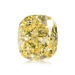 0.73 carat, Fancy Intense Yellow, cushion diamond with VS1 clarity, graded by GIA. The stone has Very Good polish and Good symmetry.