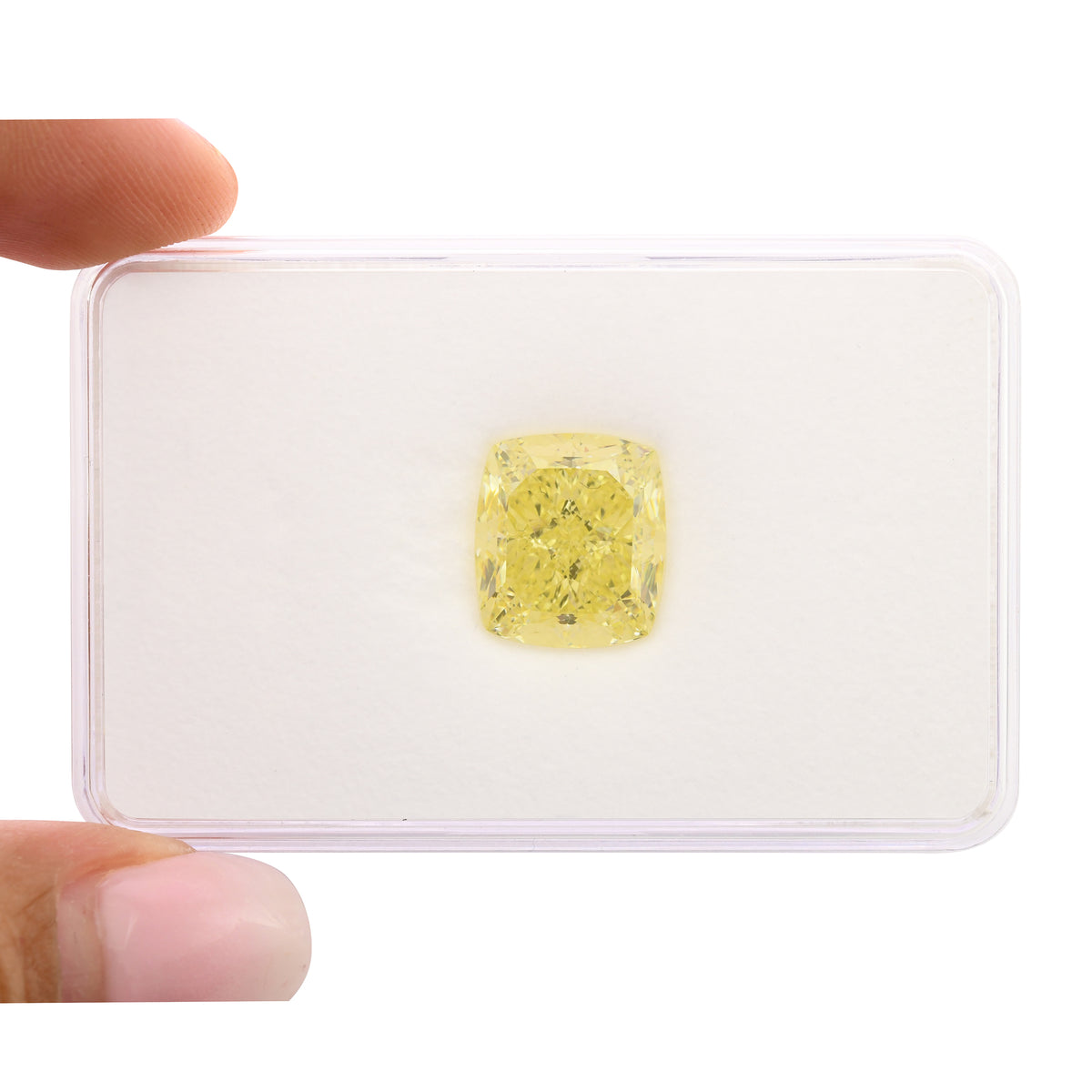 This 10.52-carat fancy yellow cushion diamond, certified VS2 by GIA, delivers impressive size and clarity with a rich, vivid yellow tone—perfect for a striking custom design.