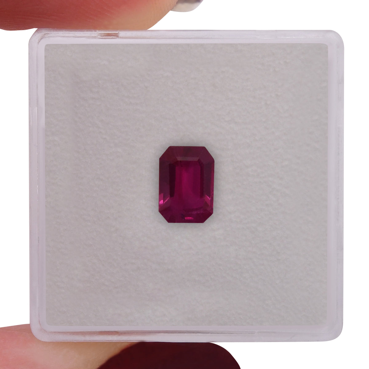 This striking 0.98 carat ruby showcases a vivid red hue in a classic emerald cut, presenting an exceptional choice for fine jewelry. Sourced from Mozambique, this gemstone delivers the rich color saturation and clarity that discerning collectors seek.