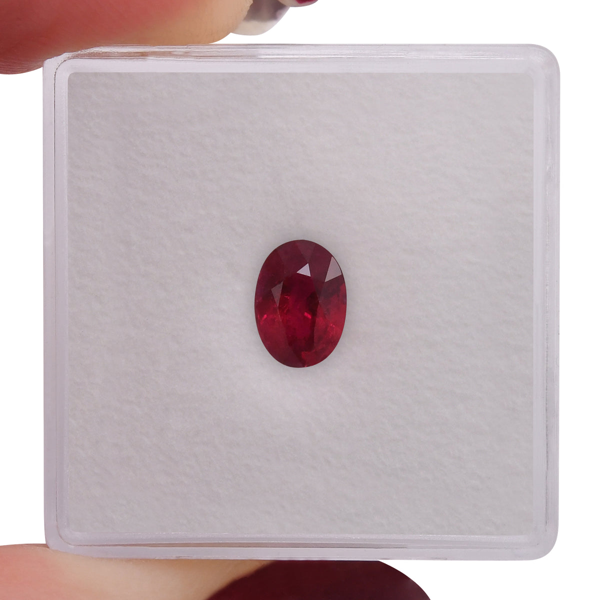 This stunning 1.02 carat ruby showcases a vibrant red hue and elegant oval cut. Sourced from Mozambique, this fine gemstone displays exceptional brilliance and vivacity, making it an excellent choice for discerning collectors and jewelry enthusiasts seeking a high-quality precious stone.