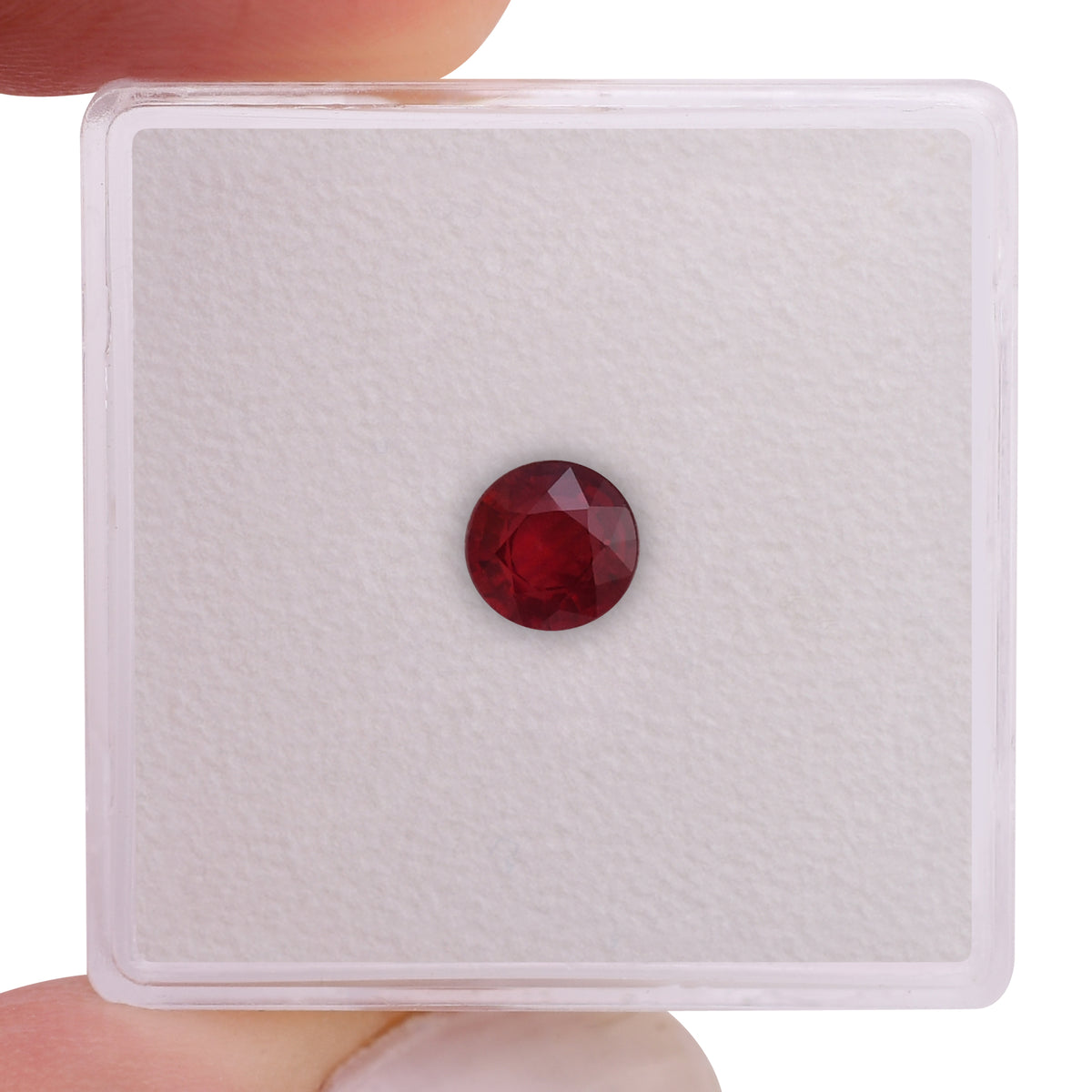 This exquisite 0.67 carat ruby showcases a vibrant red hue characteristic of Mozambique's finest stones. Cut in a classic round shape, this gemstone displays exceptional brilliance and vivid color saturation that captures light with remarkable intensity. A refined choice for those seeking authentic ruby quality and timeless elegance.