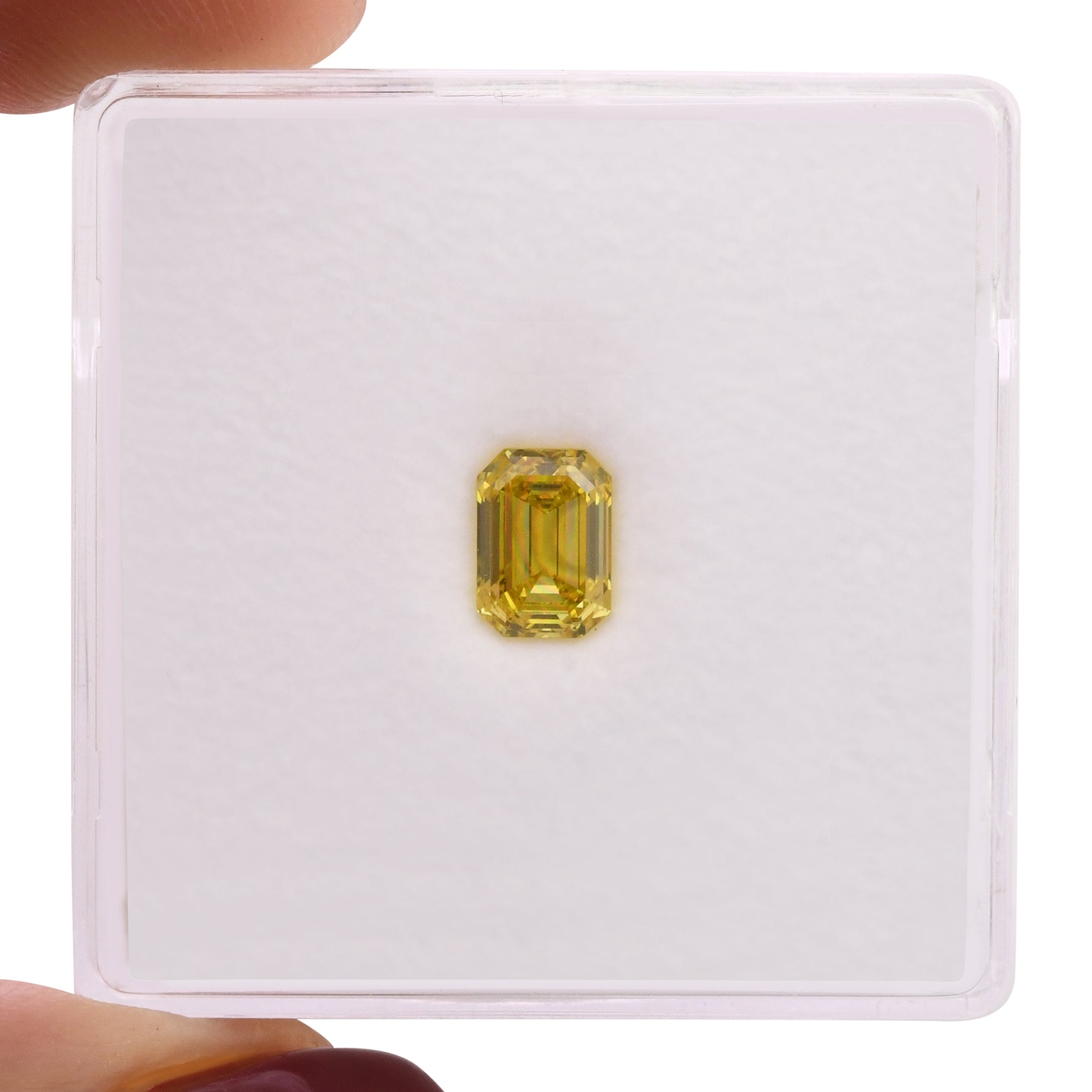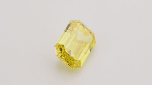 A stunning 0.61 carat fancy vivid yellow diamond with emerald cut, certified an excellent VVS2 clarity by GIA. This exceptional stone showcases a rich, saturated yellow hue with excellent transparency and minimal inclusions. The emerald cut's clean lines emphasize the diamond's vibrant color and pristine clarity, making it an ideal choice for a distinctive engagement ring or statement piece. GIA certification guarantees authenticity and quality.