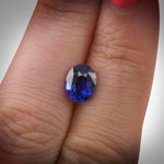 A stunning 2.04-carat blue sapphire from Sri Lanka, cut in an elegant oval shape. This fine gemstone showcases the rich, saturated blue hue characteristic of premium Sri Lankan sapphires, prized for their exceptional color and clarity.