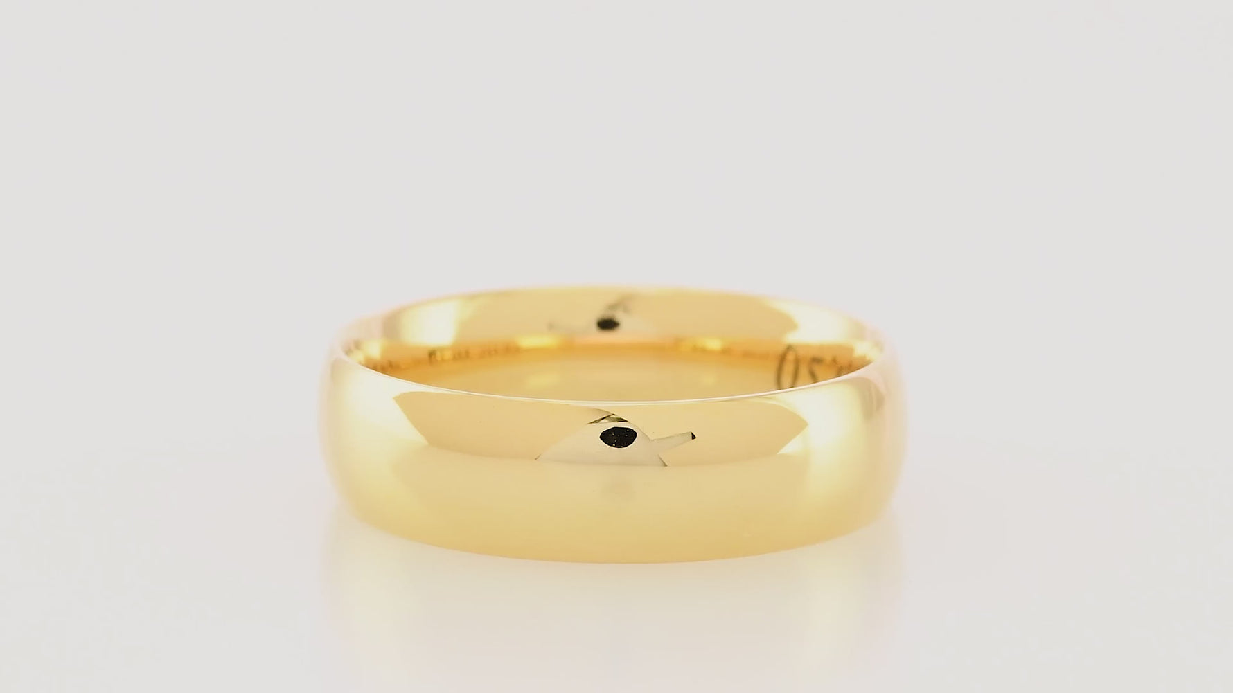 A classic comfort fit domed wedding ring with a with a refined width of 6mm, and crafted in 18K yellow gold. The comfort fit design ensures a smooth, effortless wear, while the domed exterior adds a touch of traditional charm.