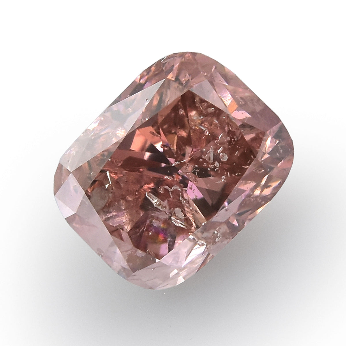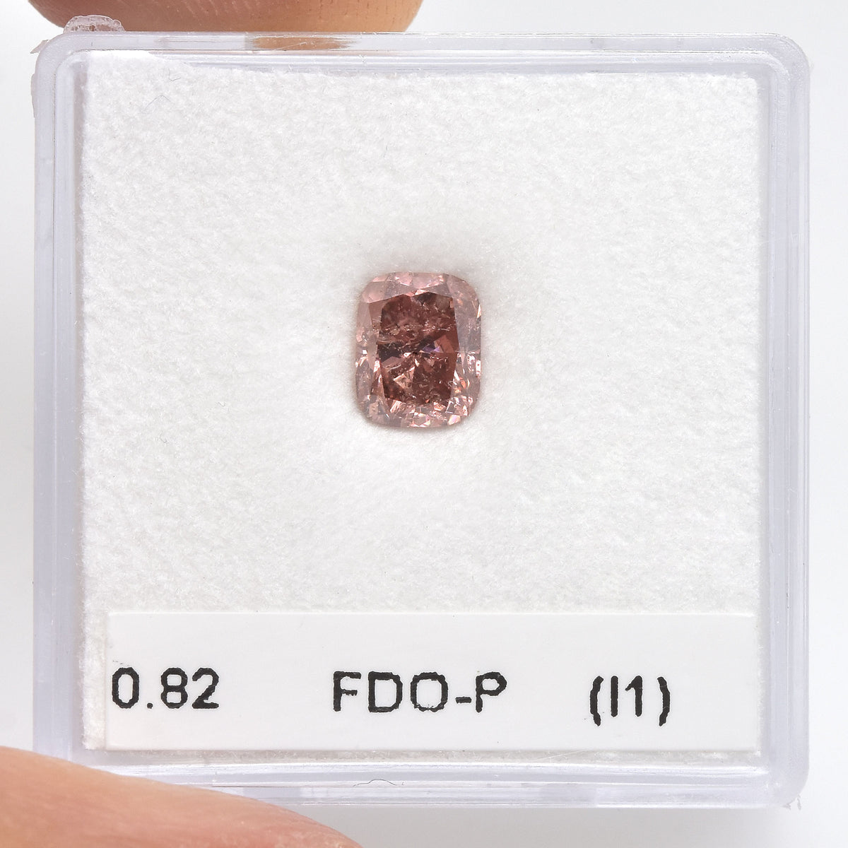 LEIBISH.0.82 Carat Fancy Deep Orangy Pink Cushion Diamond (I1) GIA