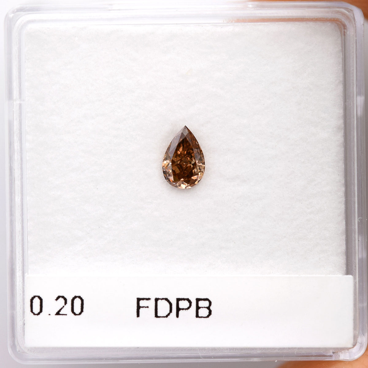 0.20 carat, Fancy Deep Pink Brown, Pear shape Diamond with (SI2) clarity, graded by GIA. A delightful Champagne Diamond with a captivating color saturation and full luster. Clarity graded by our in house GIA GG Graduate Gemologist.