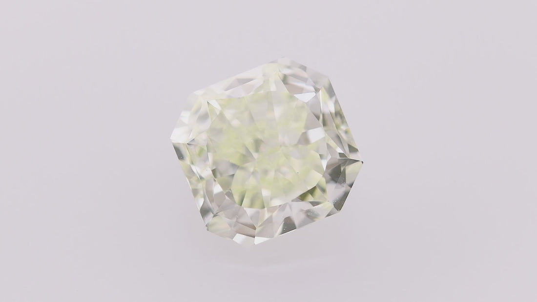 Discover the brilliance of this 1.46 carat Fancy Light Yellow Green radiant diamond, graded VS2 by GIA. Its vibrant color and excellent polish highlight exceptional luster, while good symmetry ensures a captivating sparkle.