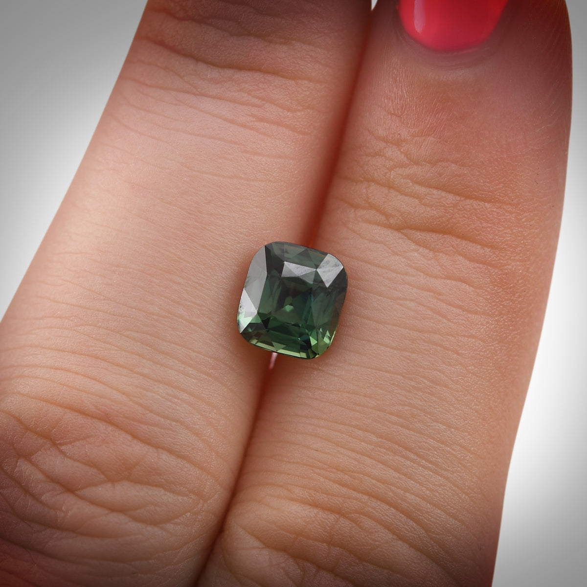 This 2.23 carat green cushion sapphire from Madagascar features exceptional clarity and rich color, perfect for refined and distinctive jewelry pieces.