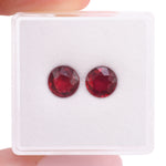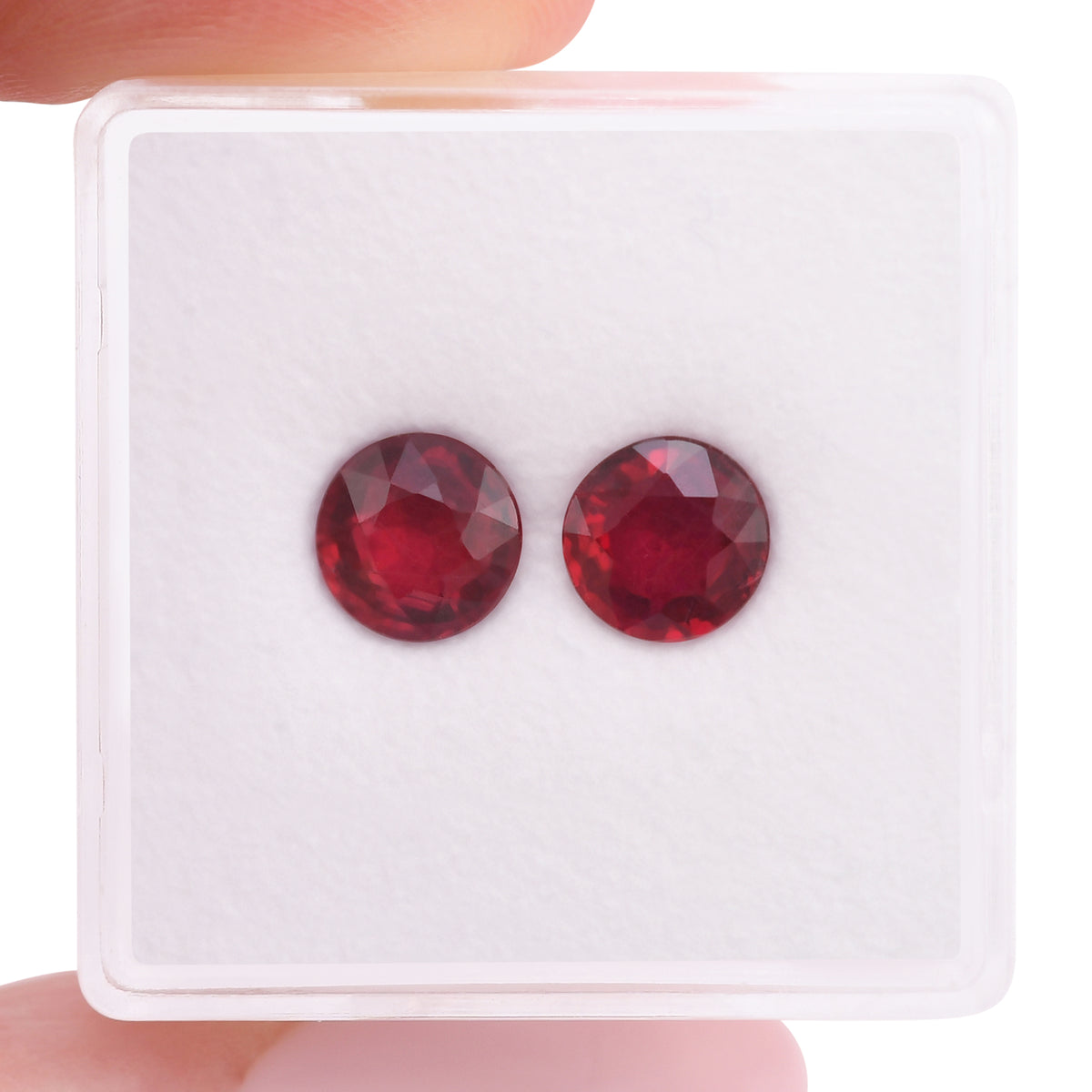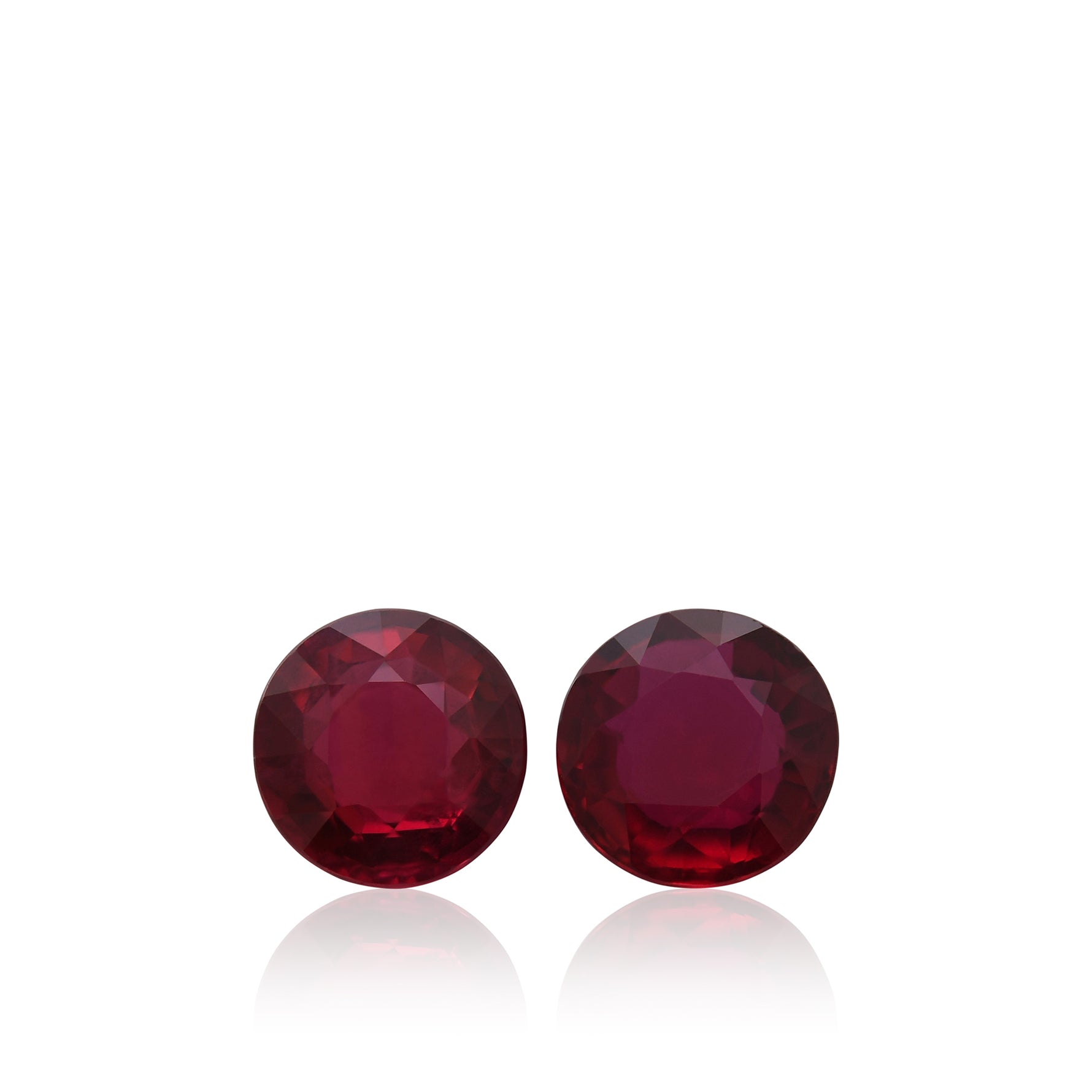 This pair of round Mozambique rubies, totaling 2.19 carats, showcases vibrant red hues with excellent transparency. Enhanced by heat treatment, these stones offer lasting brilliance and rich color, perfect for creating striking jewelry pieces.