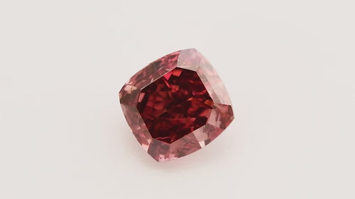Discover the captivating allure of this exquisite 0.19 carat Fancy Red cushion-cut diamond, certified SI1 by GIA. This rare gemstone showcases a mesmerizing deep red hue that commands attention, making it an ideal centerpiece for a truly distinctive piece of fine jewelry. The cushion cut enhances the diamond's natural brilliance and color saturation, while its SI1 clarity ensures exceptional quality. Perfect for those seeking something extraordinary and unforgettable.