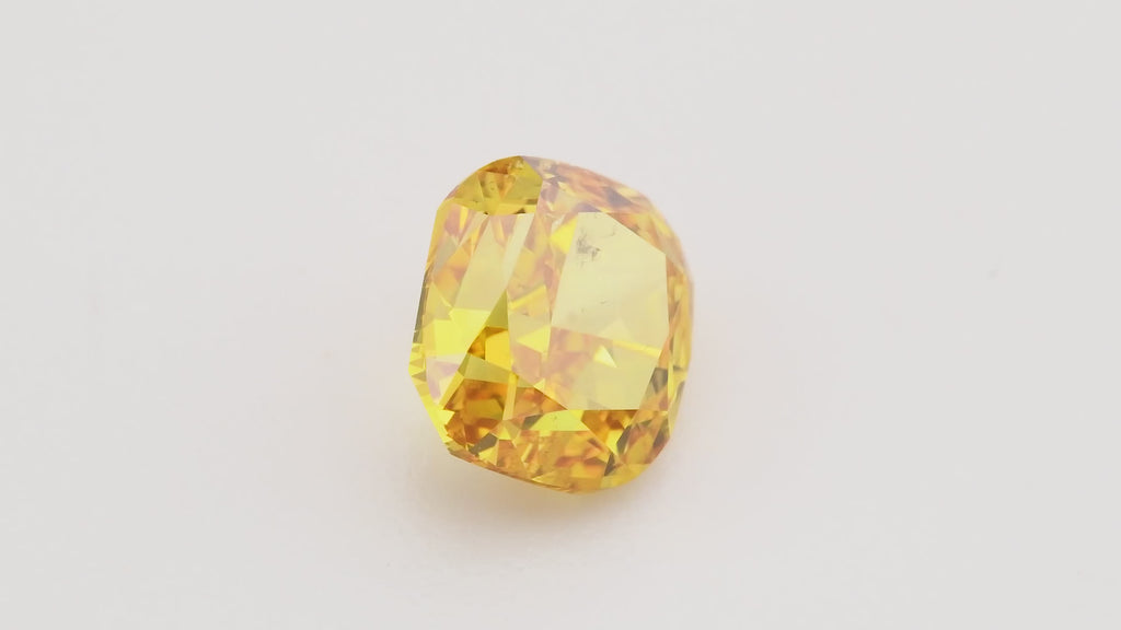 A stunning 1.05 carat fancy vivid orange yellow diamond, expertly cut in a cushion shape to maximize brilliance and color saturation. This GIA-certified stone showcases an exceptional warm hue with SI1 clarity, offering excellent transparency with minimal eye-visible inclusions. The cushion cut enhances the diamond's natural radiance, making it an ideal choice for a distinctive engagement ring, pendant, or collector's piece.