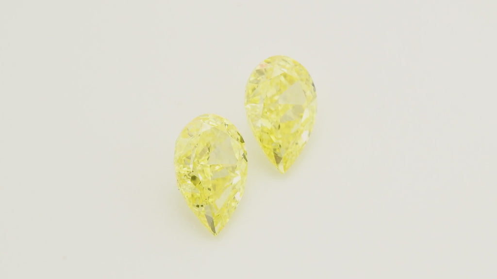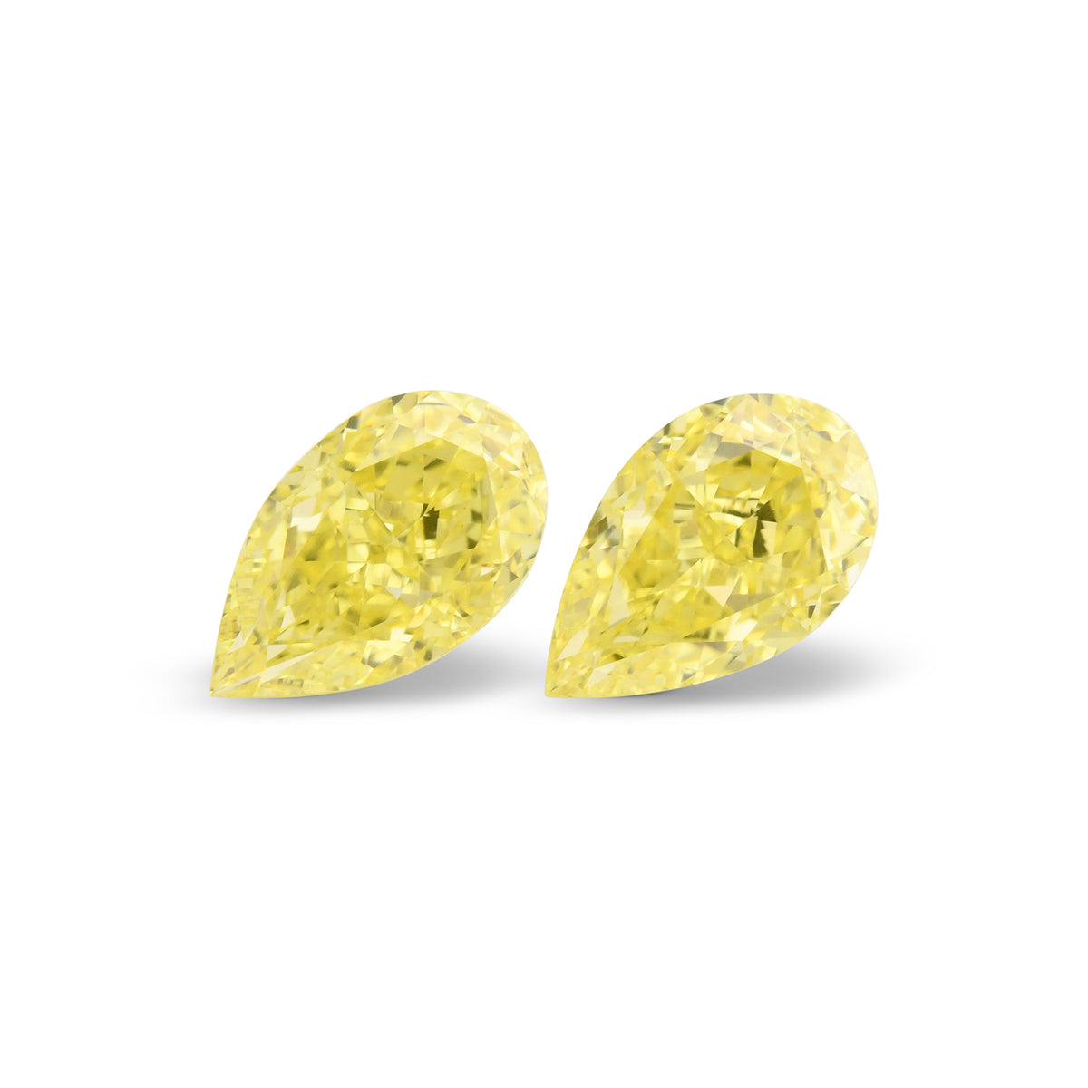 Discover the radiance of these exceptional yellow pear diamonds—a matched pair totaling 1.36 carats of pure elegance. Each stone showcases Fancy Intense color saturation and VS1 clarity, certified by GIA for authenticity and quality. The distinctive pear cut maximizes brilliance while offering a sophisticated silhouette perfect for creating a stunning centerpiece or complementary side stones.