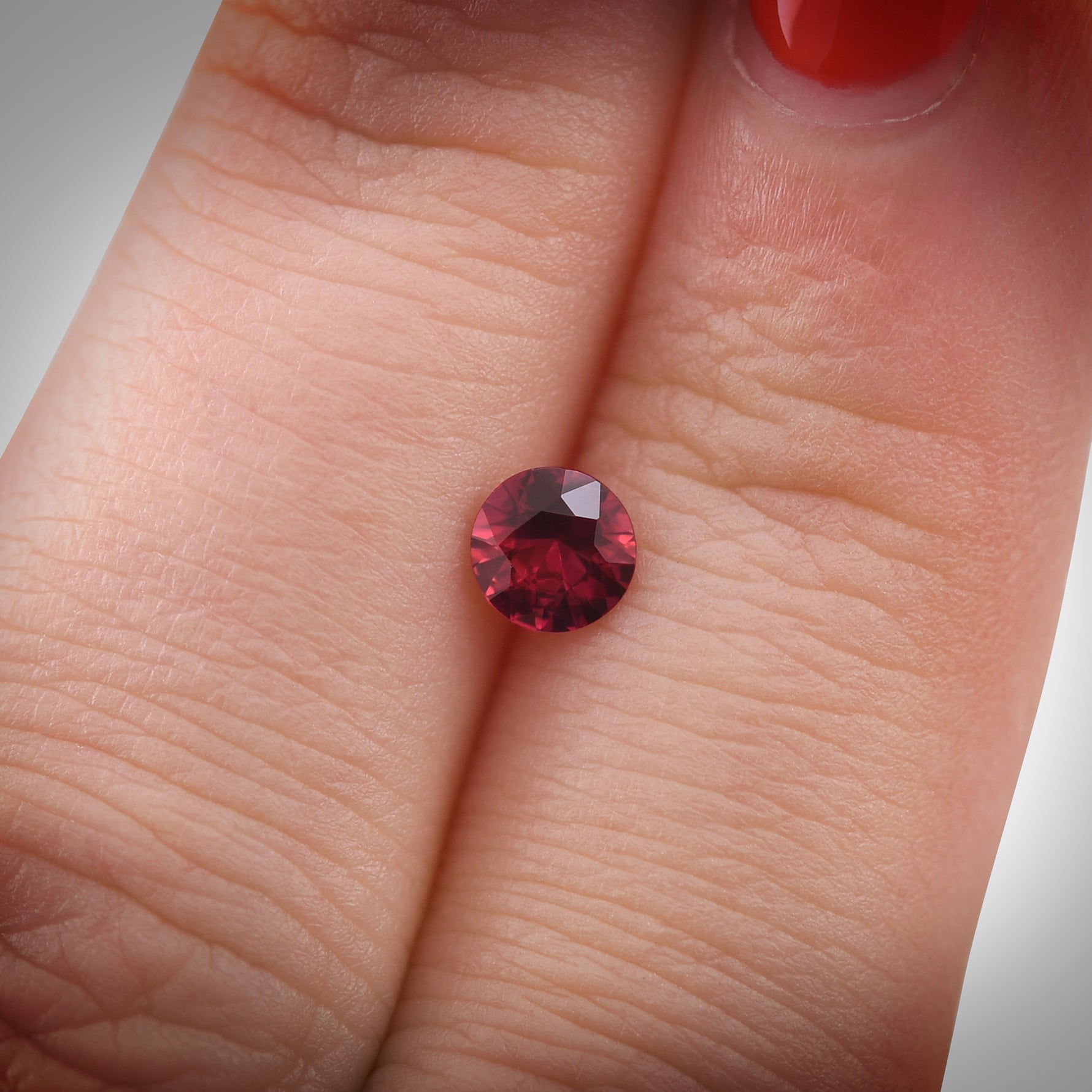 A stunning 0.52 carat round ruby from Mozambique, showcasing a rich red hue. This precious gemstone offers timeless elegance for fine jewelry creations.