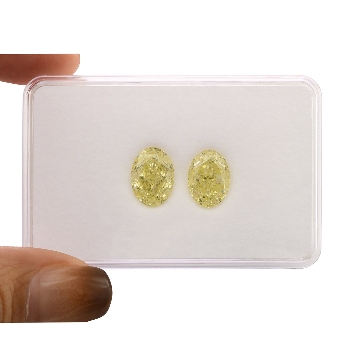 This matched pair of oval diamonds totals 8.11 carats of pure elegance. Each stone carries VS1 and VVS1 clarity and GIA certification, showcasing a captivating Fancy Light Yellow hue. Ideal for bespoke jewelry creation, these premium gemstones deliver both investment quality and stunning visual presence in one exceptional pairing.