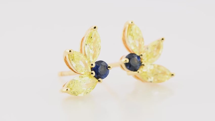Blue Sapphire and Fancy Intense Yellow Marquise Couture Diamond Earrings