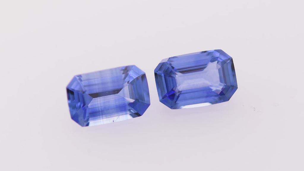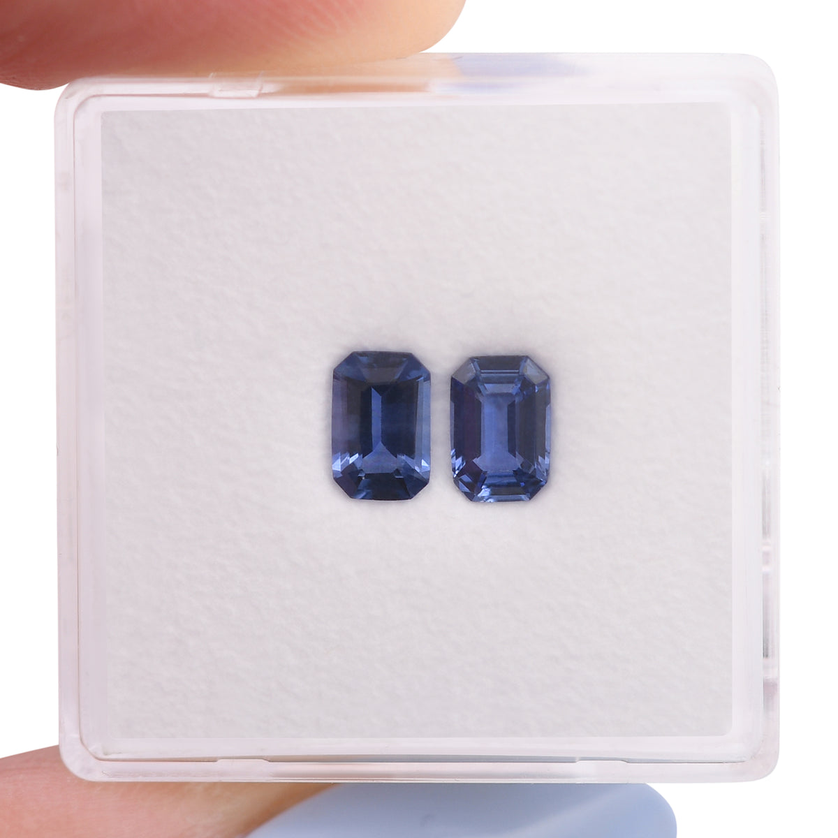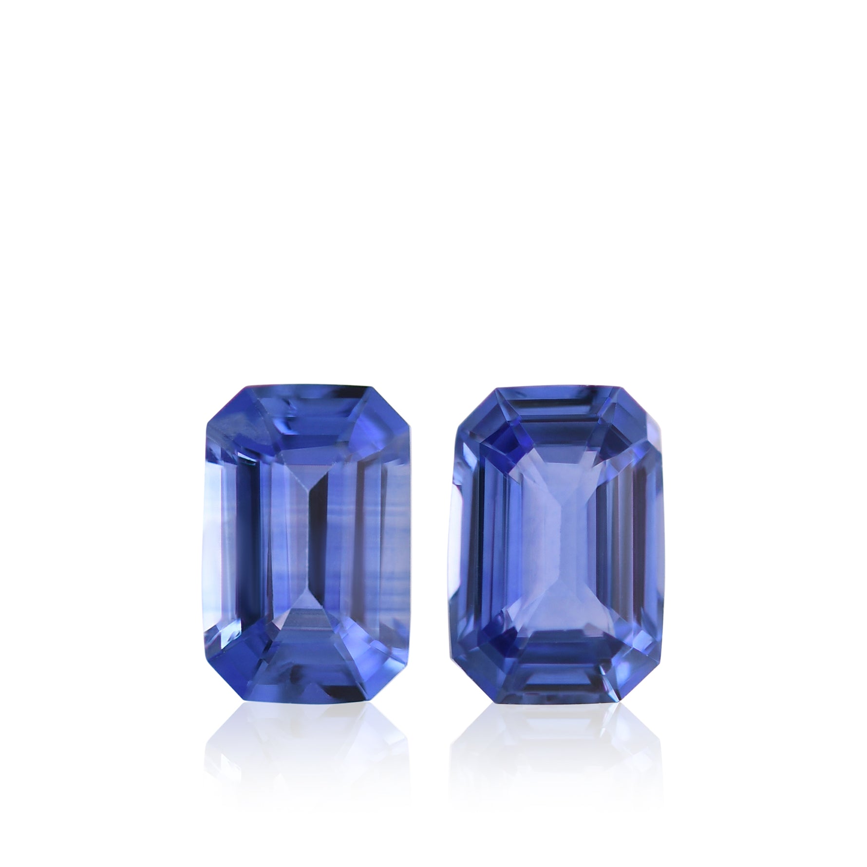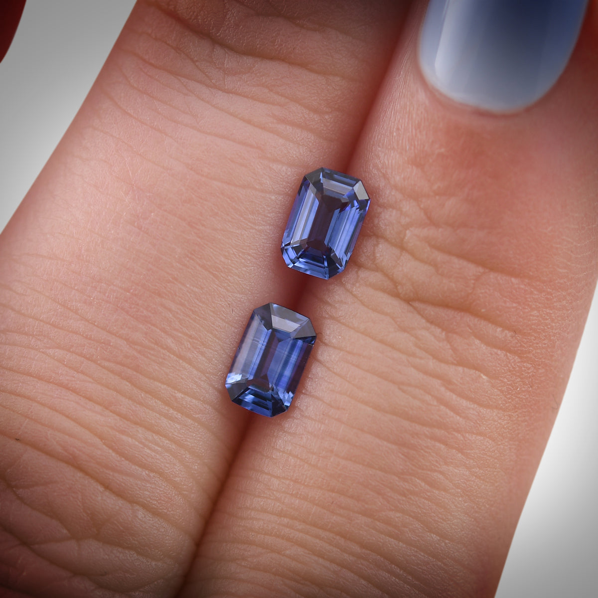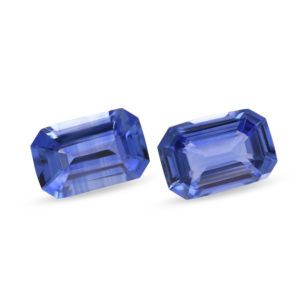A premium pair of blue sapphires from Sri Lanka, totaling 1.13 carats. These emerald-cut stones display the rich, saturated blue characteristic of Ceylon sapphires, renowned for exceptional color and clarity. Perfect for custom jewelry designs.