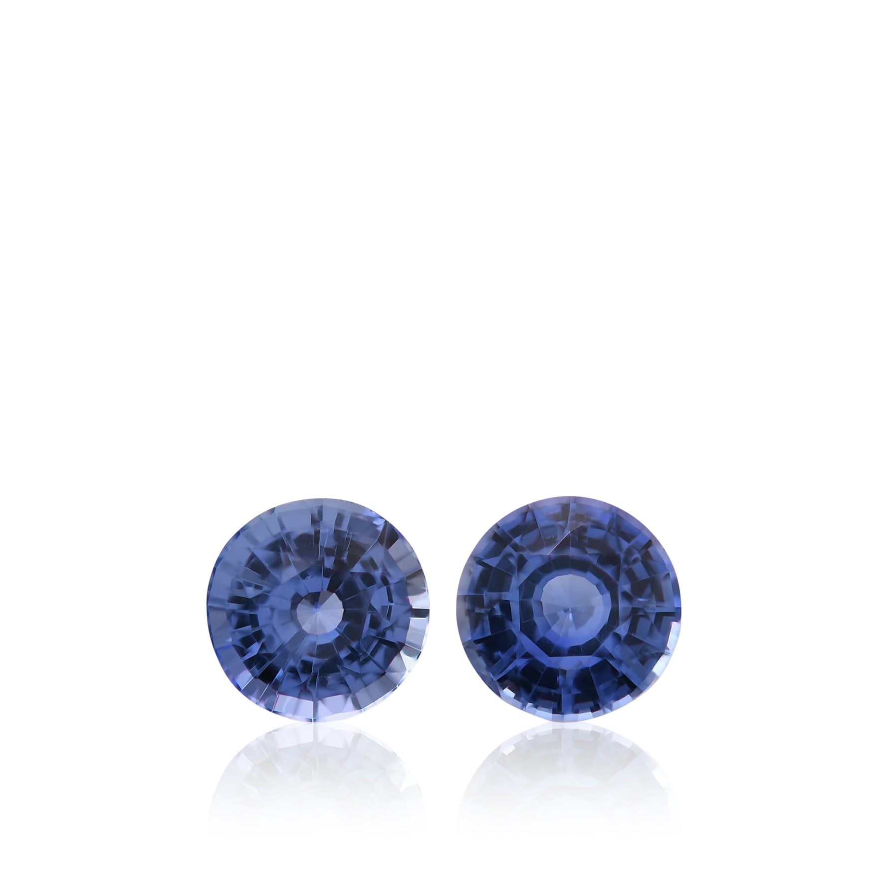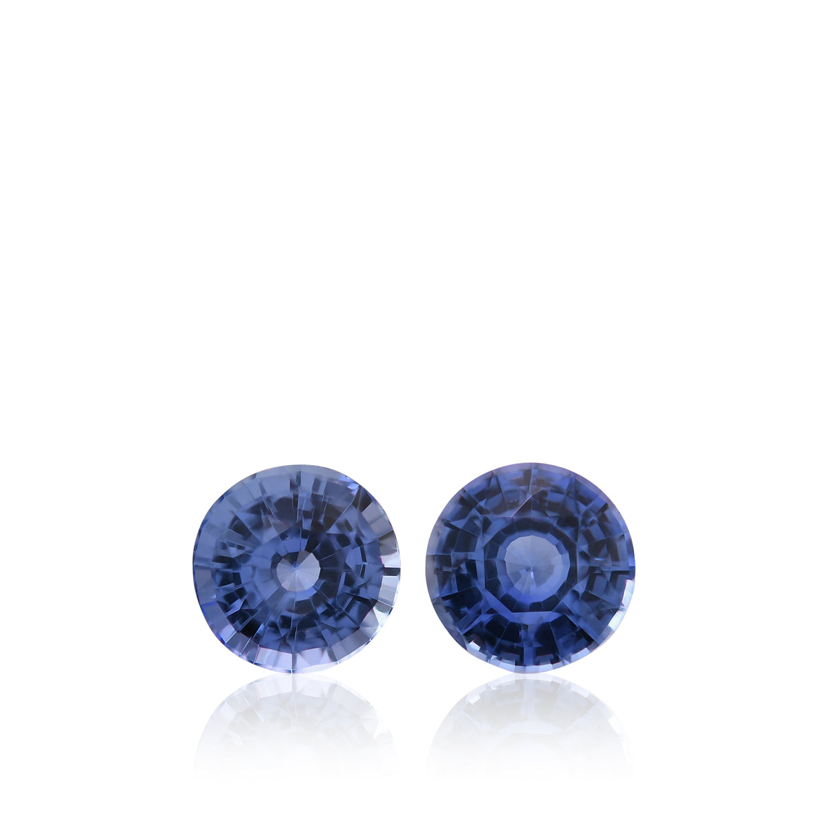 This 1.30 carat pair of round Sri Lankan blue sapphires features vivid color and excellent clarity, ideal for elegant jewelry designs requiring matched, durable gemstones.