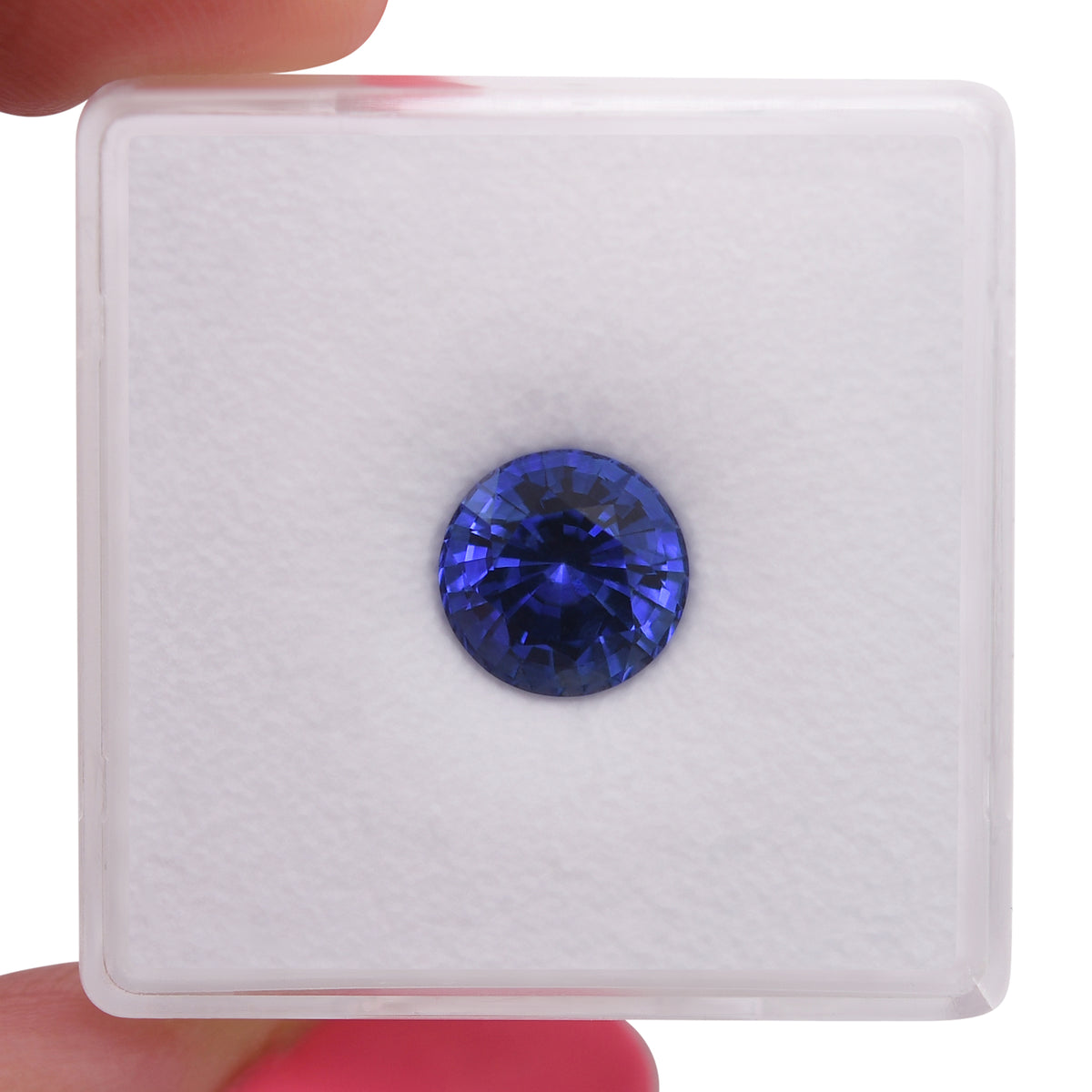 A stunning 2.27-carat blue sapphire from Sri Lanka, cut in a classic round brilliant form. This exceptional gemstone showcases the deep, saturated blue hue Sri Lankan sapphires are renowned for, with excellent clarity and brilliance. A premium choice for fine jewelry.