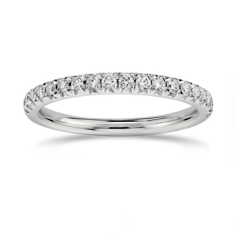 Half-eternity diamond wedding ring with collection colorless round brilliants and French Pave style setting