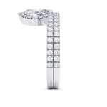 A wonderful Wedding set with Open Pave along the Band and Engagement Ring. The ring features a central 0.50cts F color pear shape diamond. This set is available in 18K gold or in platinum