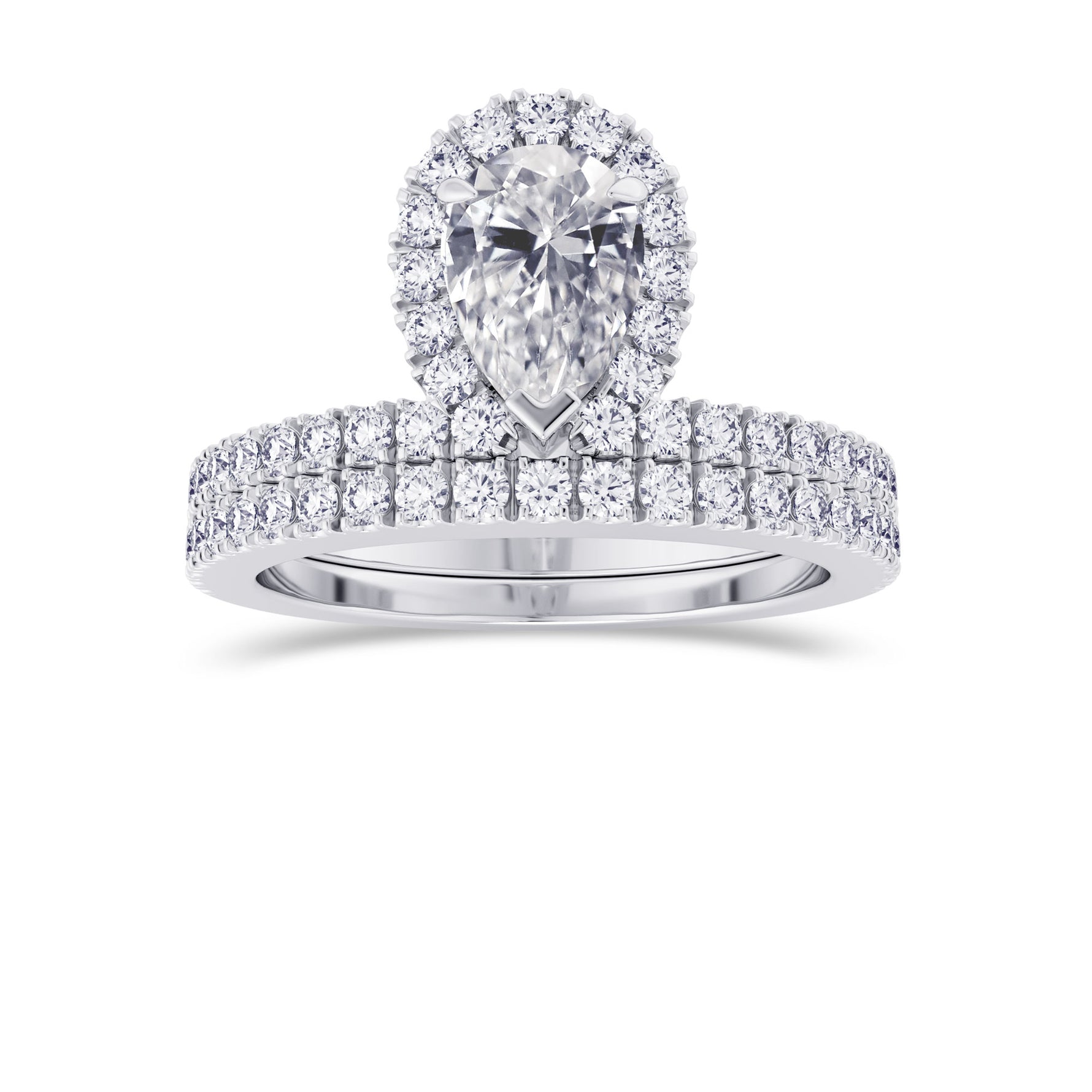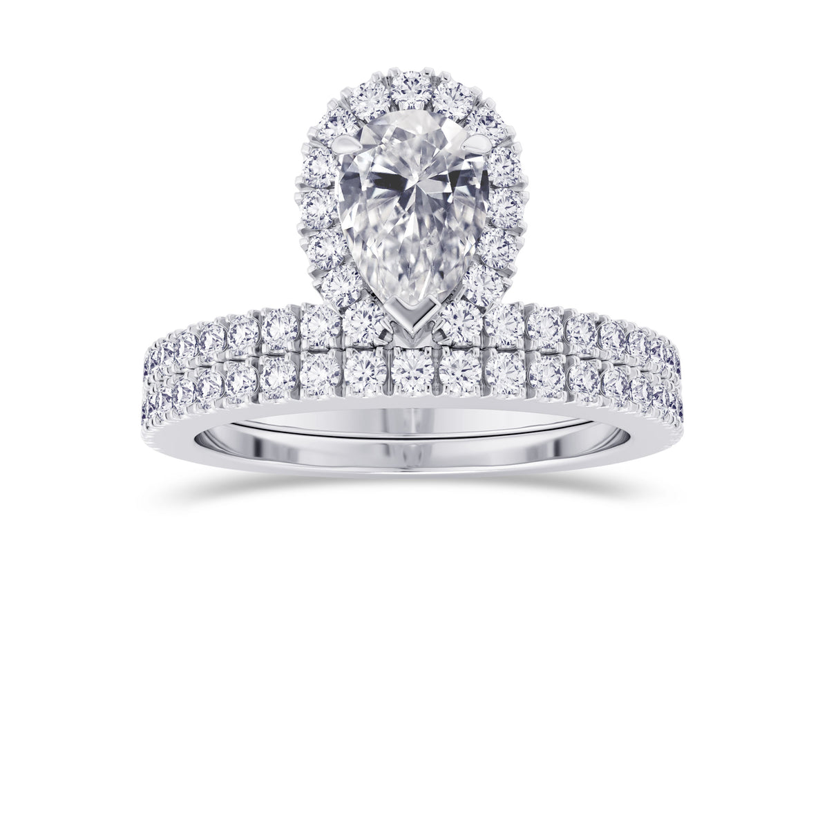 Pear Shaped Halo Diamond Engagement Ring & Wedding Band Set