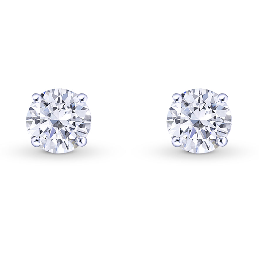 Classic studs...White round brilliant diamond stud earrings mounted in white gold, with a four prong Martini style setting, secured with screw backs.