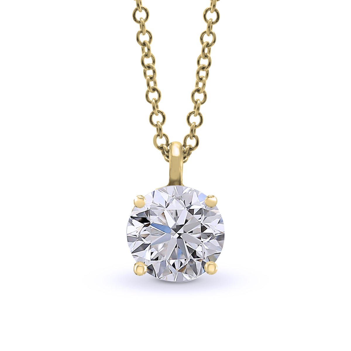 A classic, 0.50 carat round brilliant diamond solitaire pendant, mounted in four prong wire setting, in white or yellow gold.