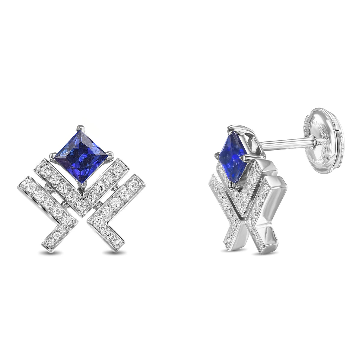 A sophisticated pair of sapphire and pavé diamond stud earrings in LEIBISH’s signature design, mounted in 18K white gold.