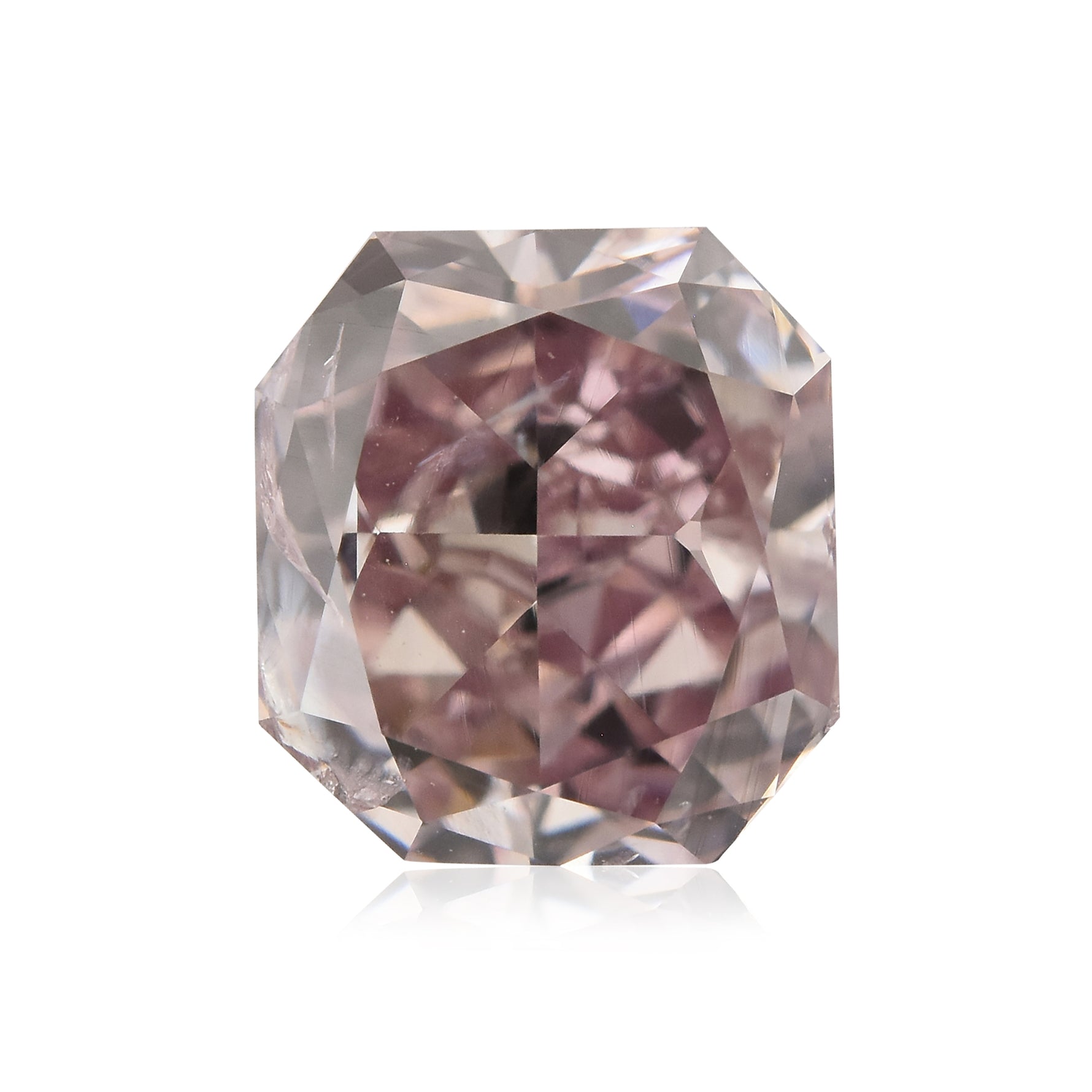 0.87 carat, Fancy Brownish Pink, Radiant shape Diamond with I1 clarity, graded by GIA. A lovely Pink Diamond with a plum color face up.  Clarity graded by our in house GIA GG Graduate Gemologist.