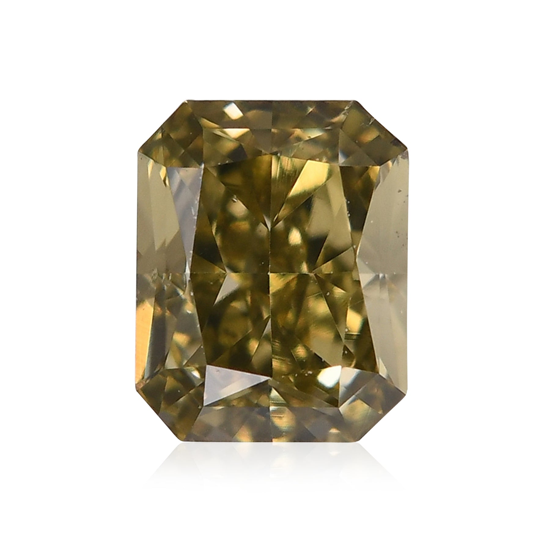 0.34 carat, Fancy Dark Brown Greenish Yellow, Chameleon Radiant shape Diamond with VS2 clarity, graded by GIA. A lovely yellow diamond with an olive color face up. The stone has Good polish and Good symmetry.  Chameleon diamonds briefly change color when heated or left in the dark.