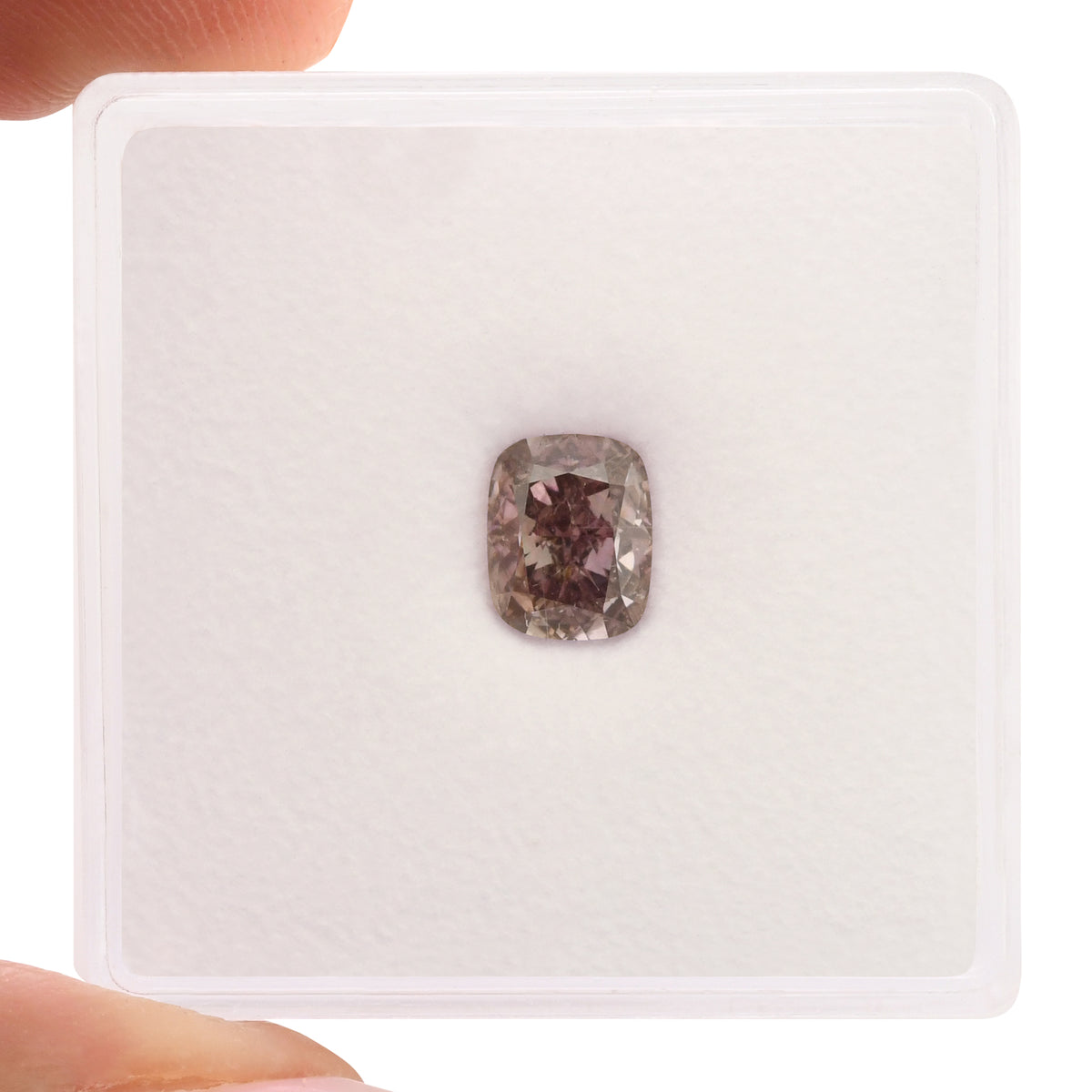 A striking 1.01 carat cushion-cut diamond with a rare Fancy Dark Brown Purple hue. GIA certified SI2 clarity, this distinctive stone offers exceptional character and depth. The cushion cut maximizes color saturation while maintaining brilliant light performance, making it ideal for a truly unique engagement ring or bespoke jewelry piece.