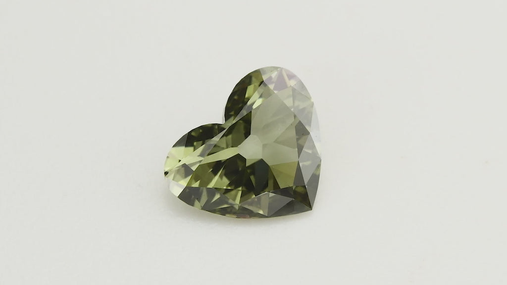 Discover the enchanting allure of this 0.86-carat heart-shaped chameleon diamond, masterfully graded as Fancy Dark Gray Yellowish Green by GIA. This extraordinary gemstone possesses a rare optical phenomenon its color subtly transforms when exposed to heat or darkness, creating an ever-evolving visual experience.