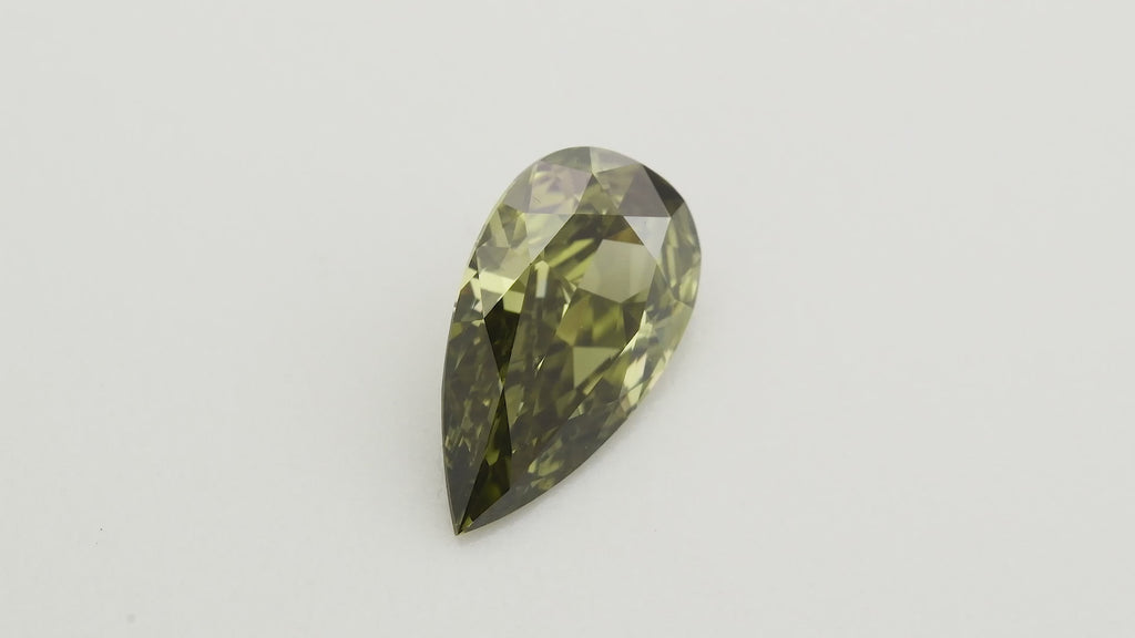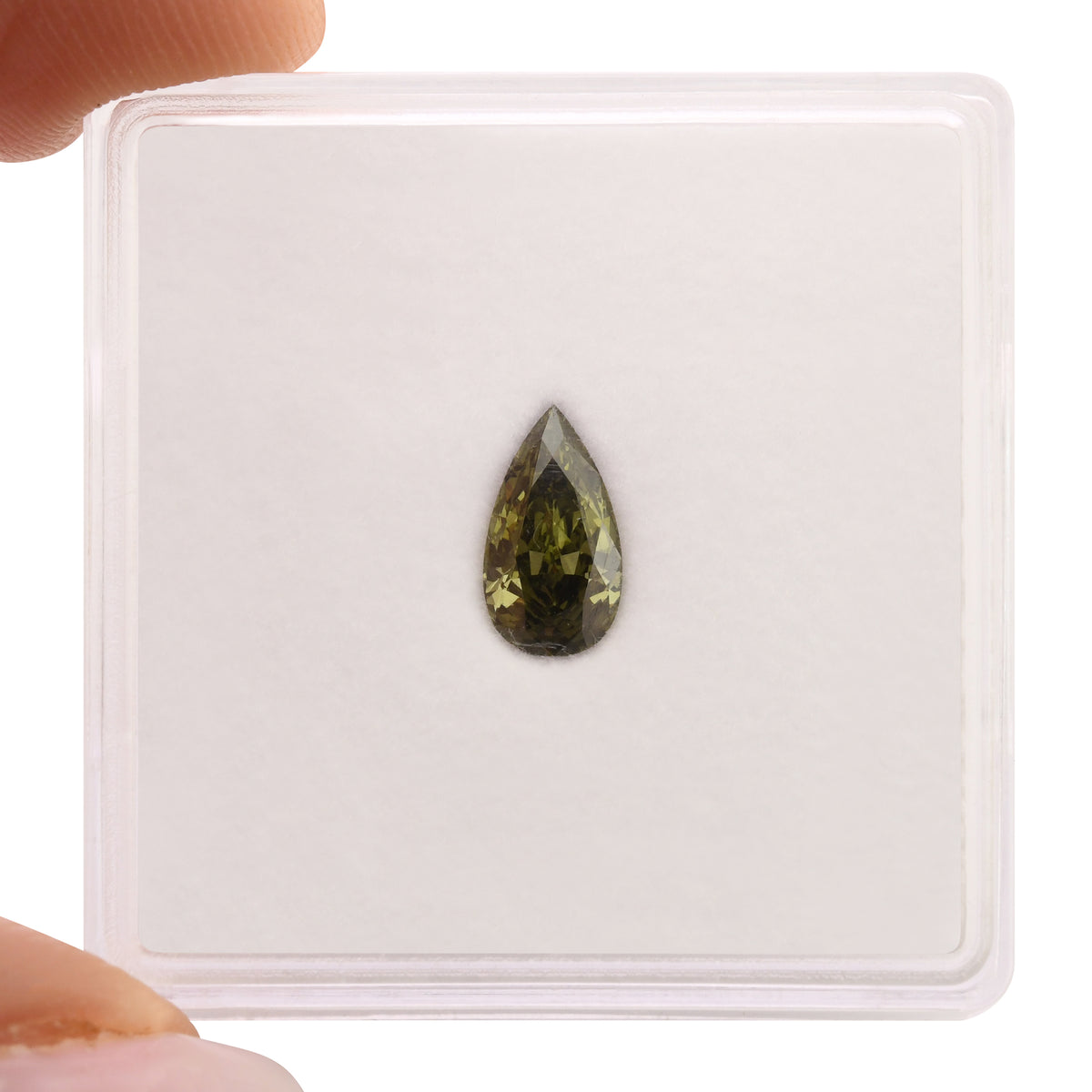 This 0.45-carat pear-shaped diamond possesses the extraordinary chameleon property—a distinctive trait where the stone's color undergoes temporary transformation when exposed to gentle heat or extended periods without light. Classified as fancy dark gray yellowish green with VS2 clarity, this gemstone captivates with its dynamic chromatic behavior.